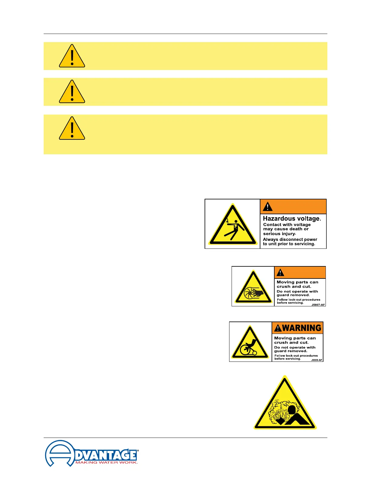 F. Samples of Warning Labels applied to typical chillers.