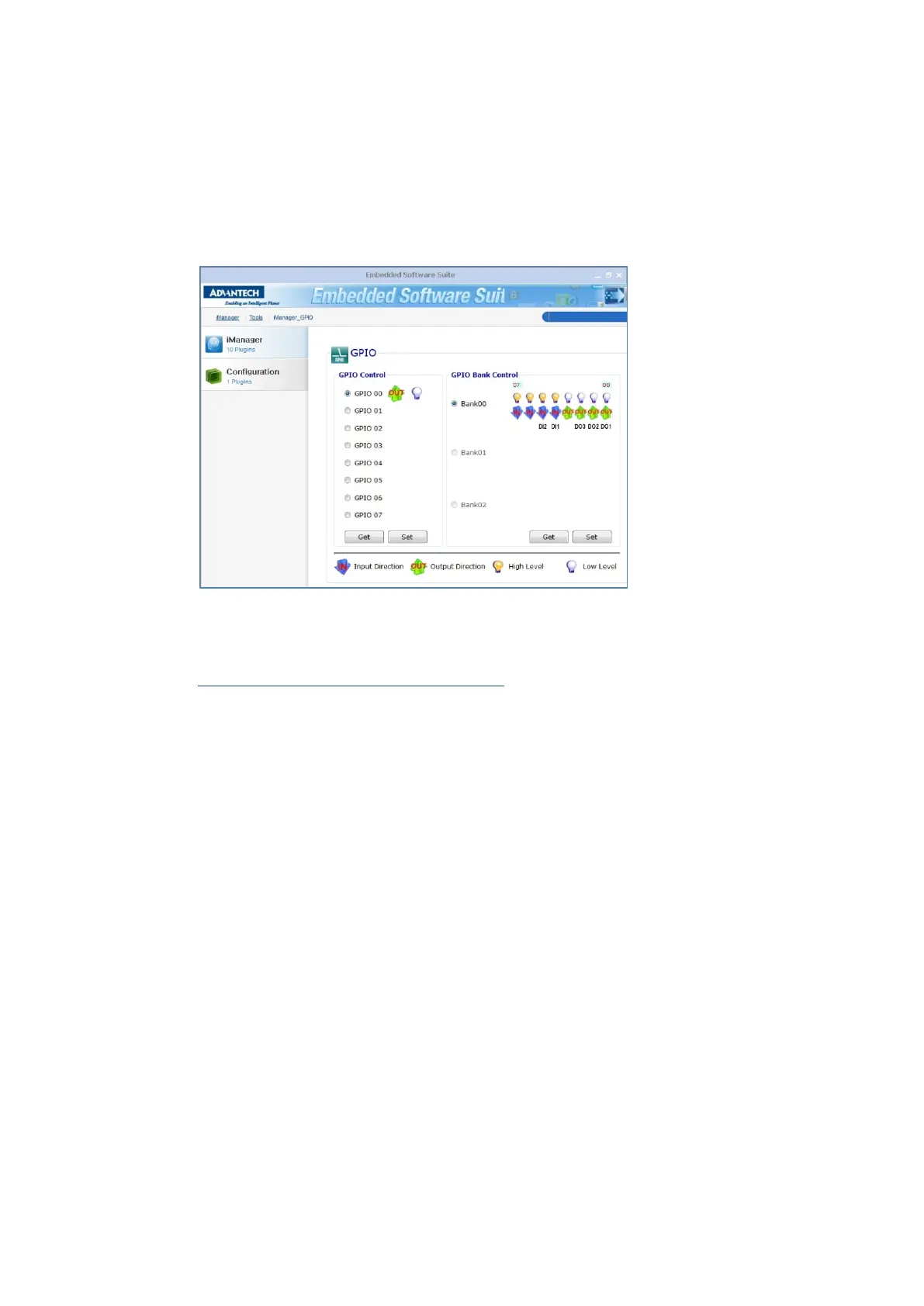 In the area GPIO Bank Control, outputs DO1 to DO3 can be set and inputs DI1 and DI2 can be