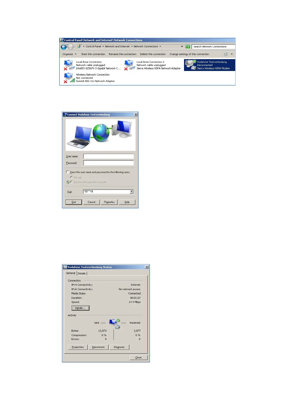 Fig. 12.7: SIERRA WIRELESS MC80 - Network connections - Vodafone test connection