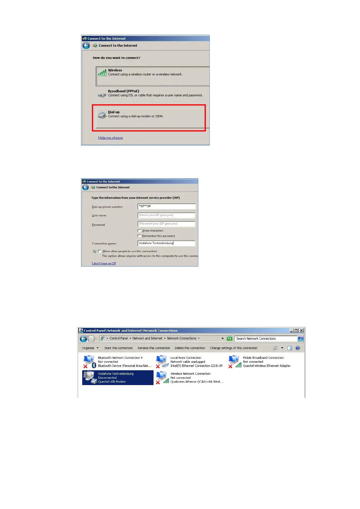 Open the Vodafone test connection under Network connections.