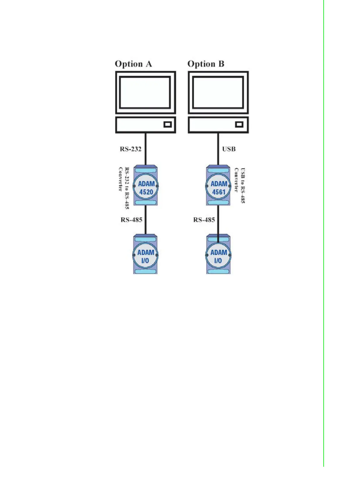 5. Connect computer to the ADAM I/O module using a RS-232 to RS-485, or