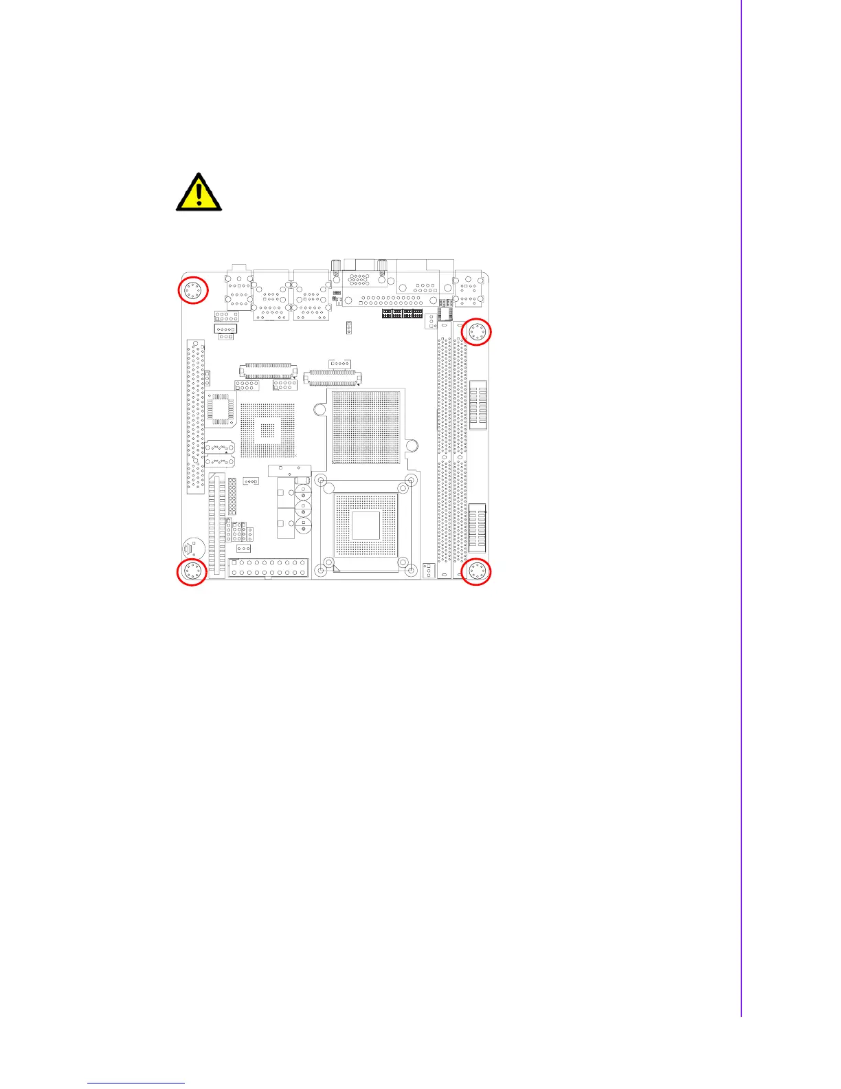 Place four (4) screws into the holes indicated by circles to secure the motherboard to