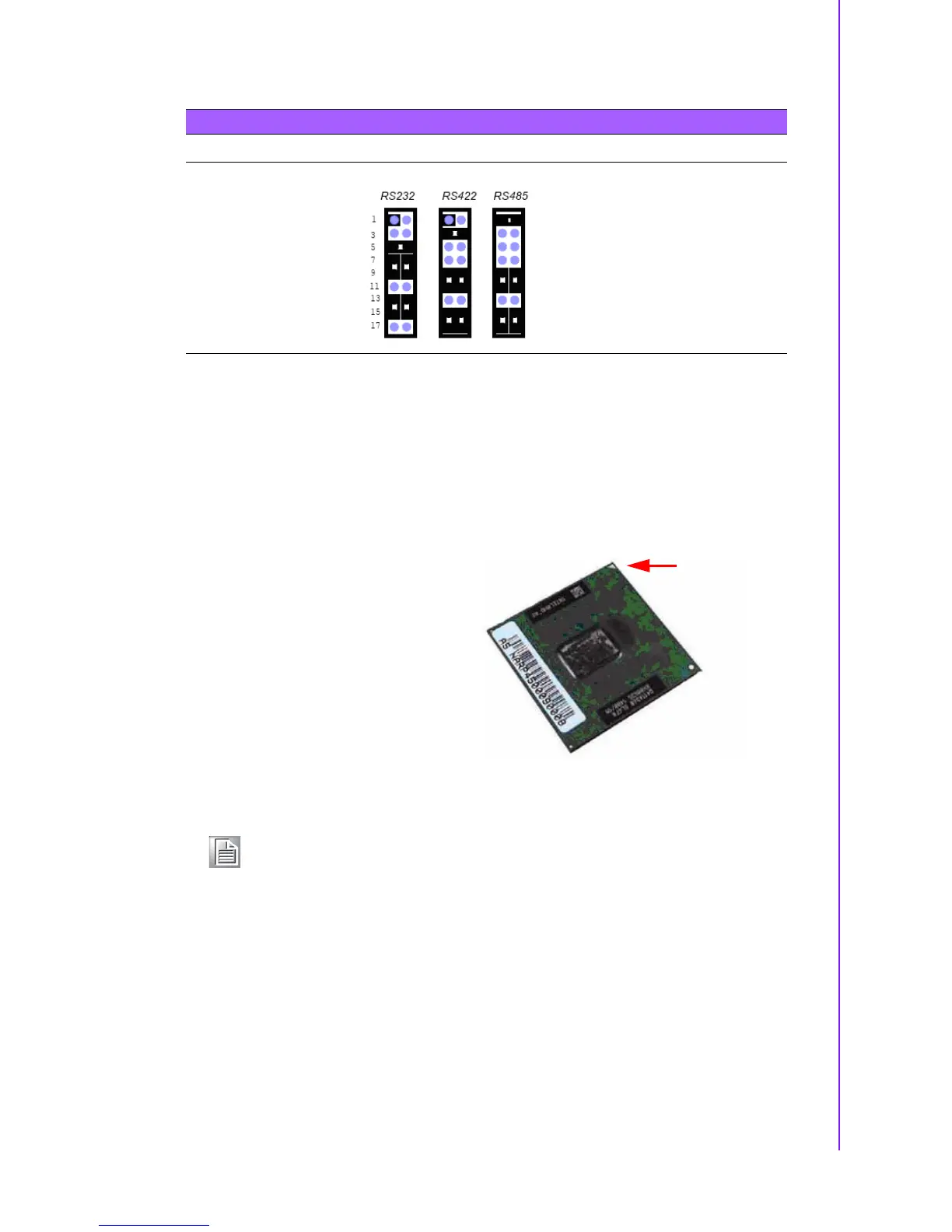 JSETCOM1 COM1 RS-232/422/485 jumper setting