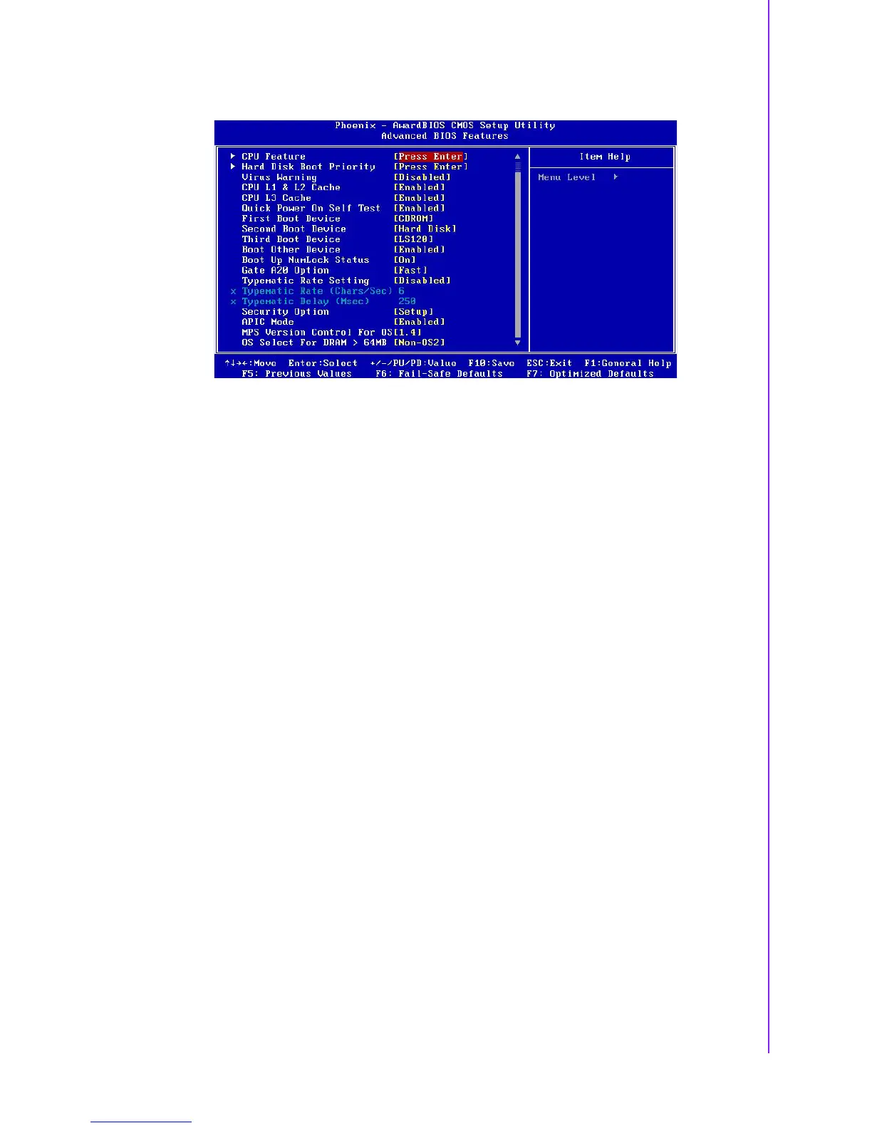 This item allows user to adjust CPU features, CPU ratio, VID and Thermal and
