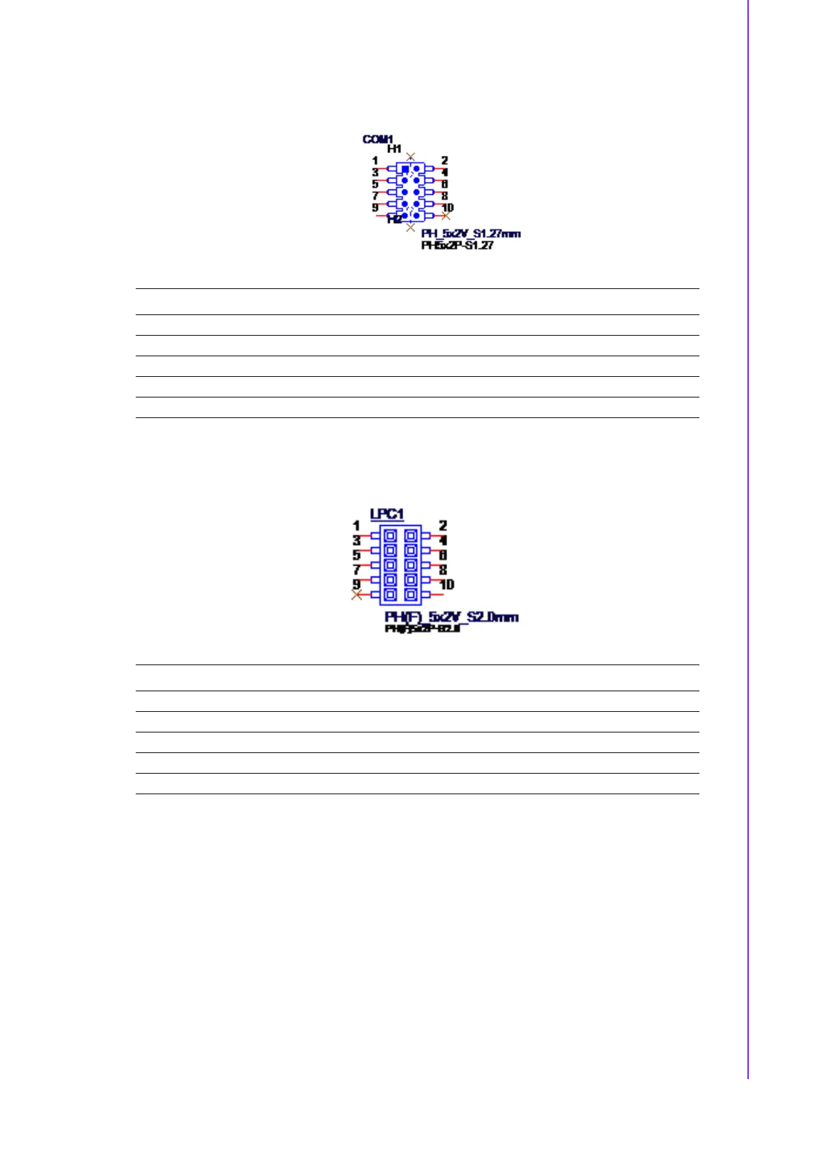 Advantech AIMB-276 - COM1 Pin Header ( S1.27 MM) (COM1); Low Pin Count Interface Connector (LPC1)