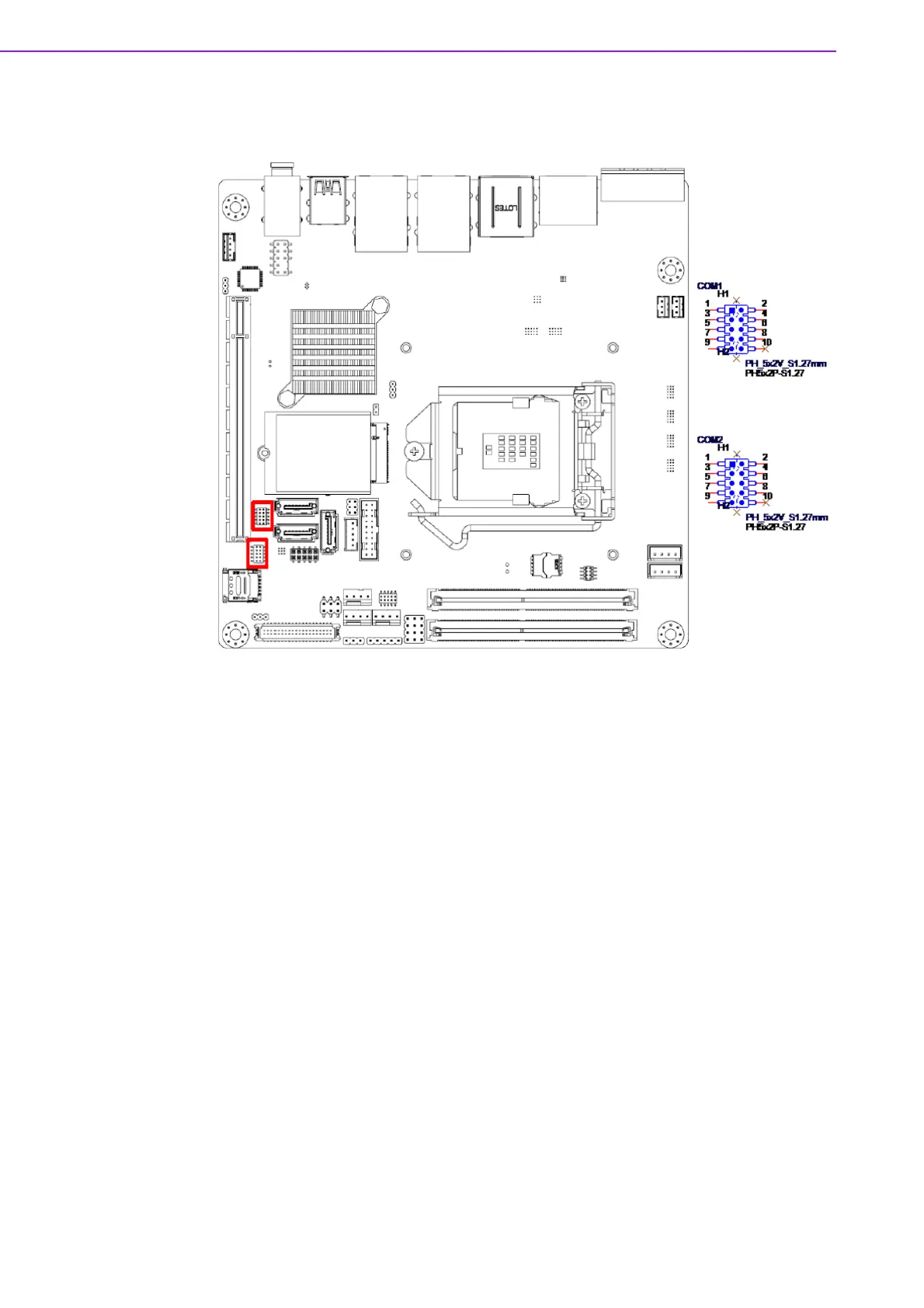 AIMB-276 supports two serial ports, COM1 supports RS-232 function, COM2 sup-