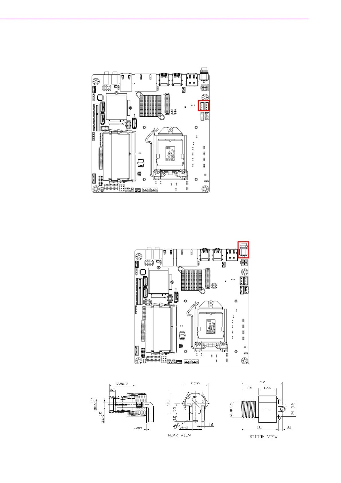 Advantech AIMB-286 - SATA Power Connector (SATA_PWR1;2); DC Input Connector (DCIN1)