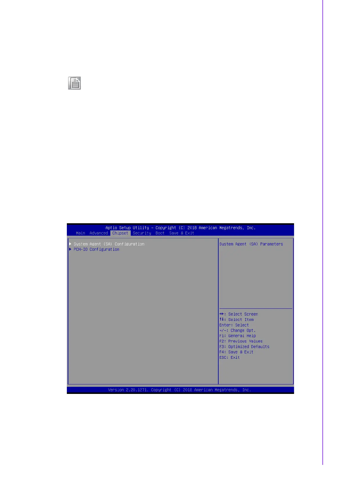 figuration, to go to the sub menu for that item. Users can display a Chipset Setup