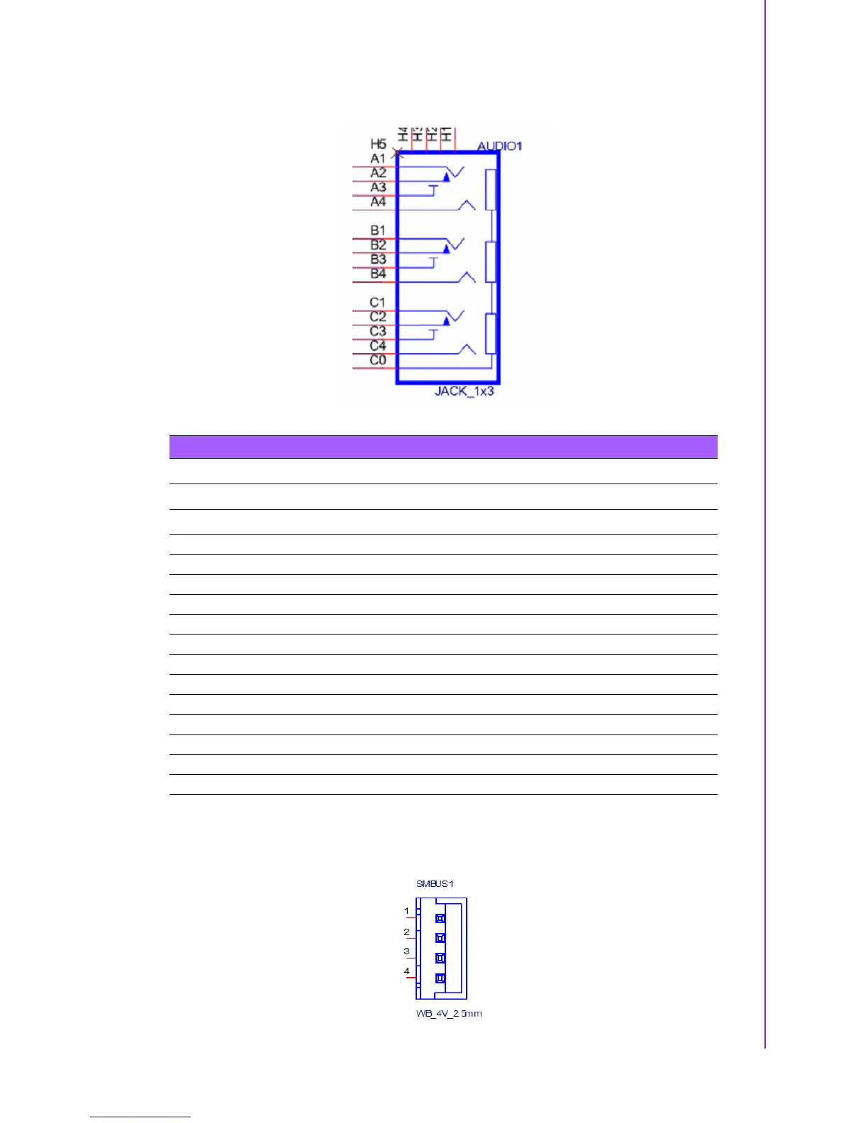 Advantech AIMB-501 - Audio Jack (AUDIO1); Table B.14:Audio Jack (AUDIO1); SM BUS Connector (SMBUS1)