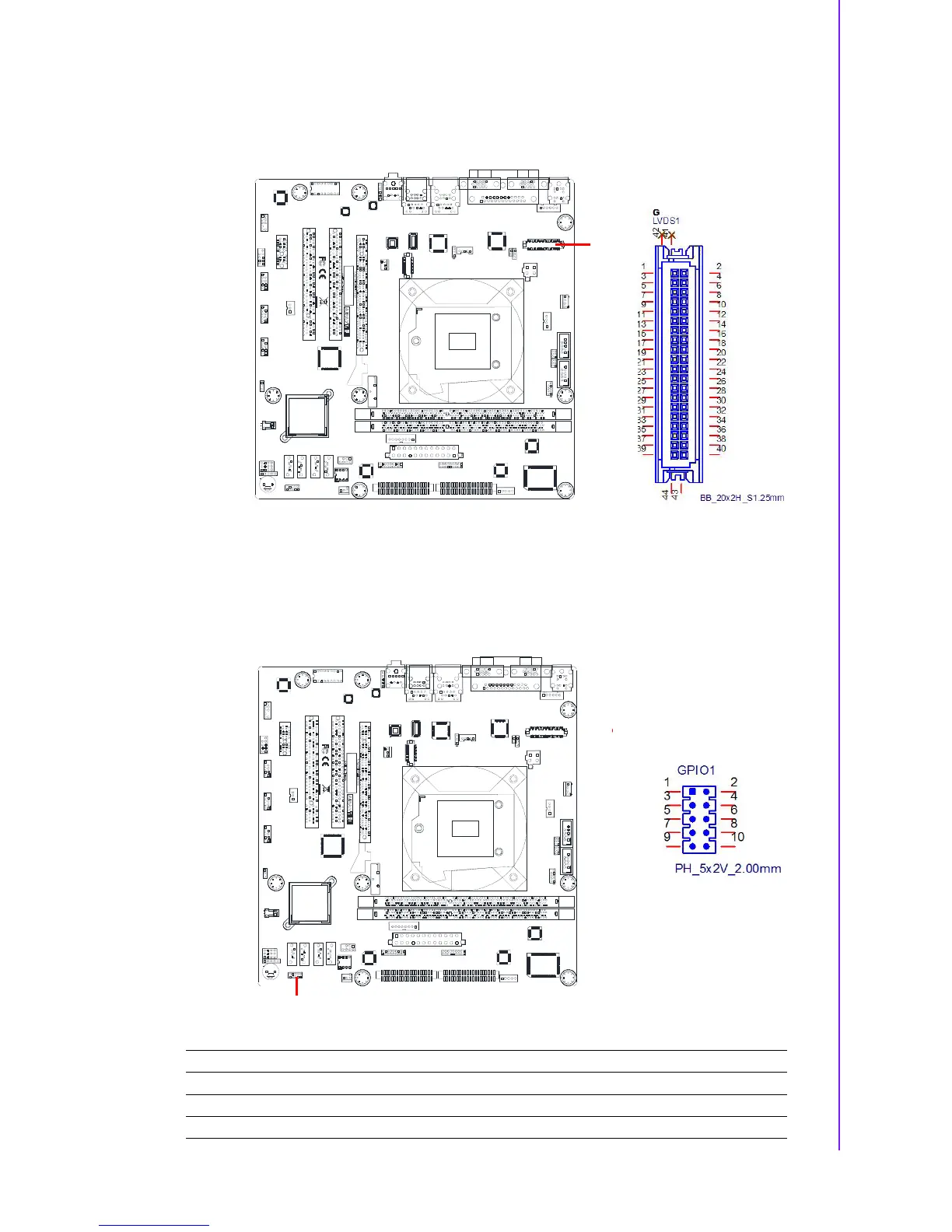 Advantech AIMB-501 - LVDS Connector (LVDS1); General Purpose I;O Connector (GPIO1)