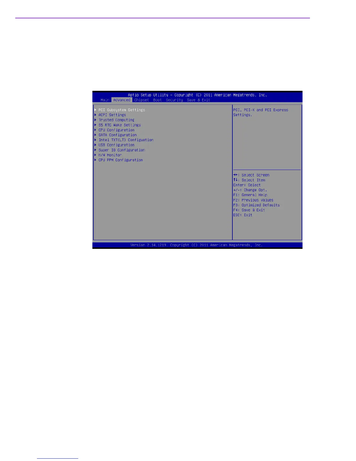 Select the Advanced tab from the AIMB-501 setup screen to enter the Advanced