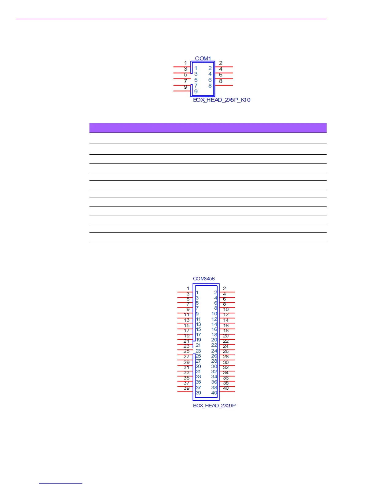 Advantech AIMB-501 - COM Port Connector (COM1;COM2); Table B.6: COM Port Connector (COM1;COM2); COM Port Connector (COM3456;COM78910)