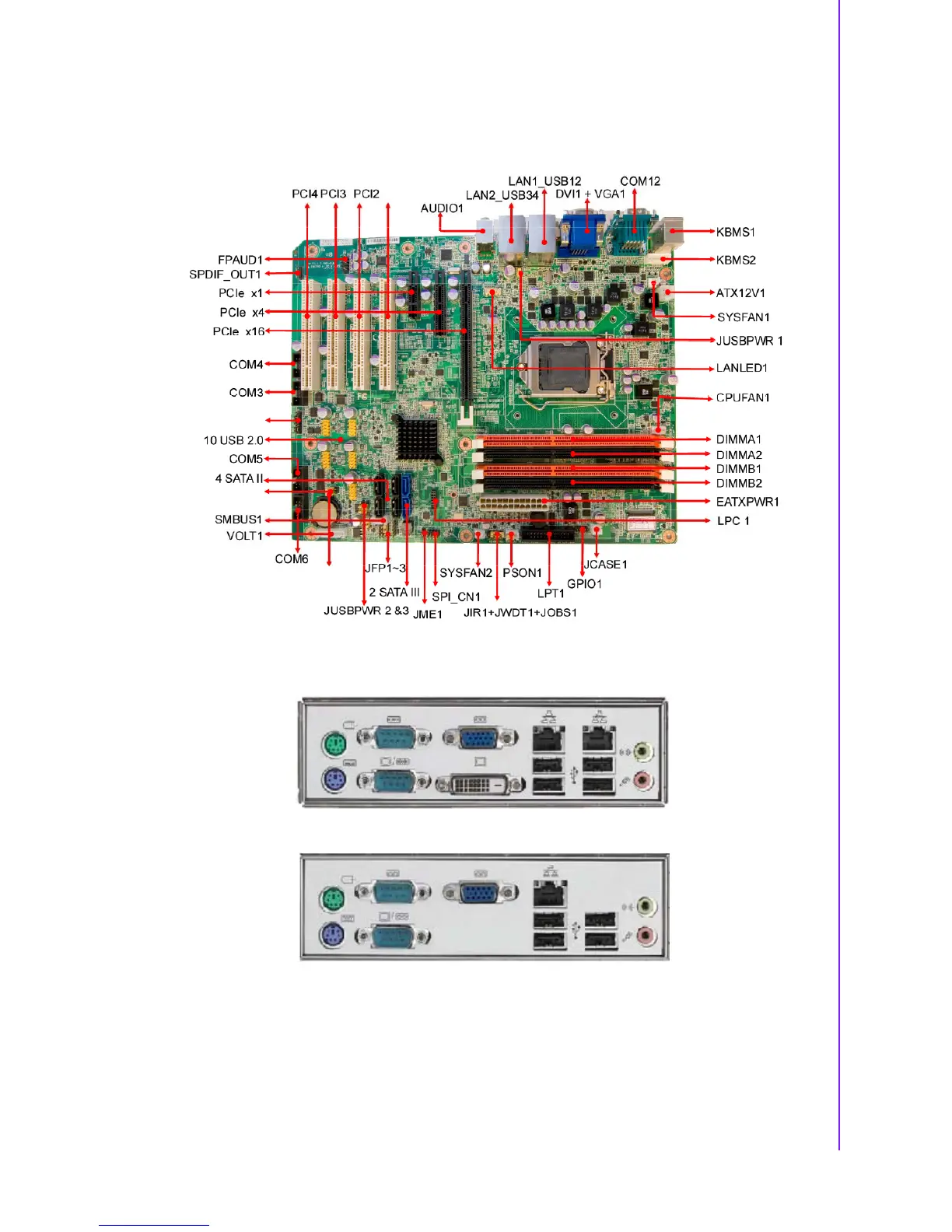 Advantech AIMB-781 - Board Layout: Jumper and Connector Locations; Figure 1.1 Jumper and Connector Locations; Figure 1.2 I;O Connectors