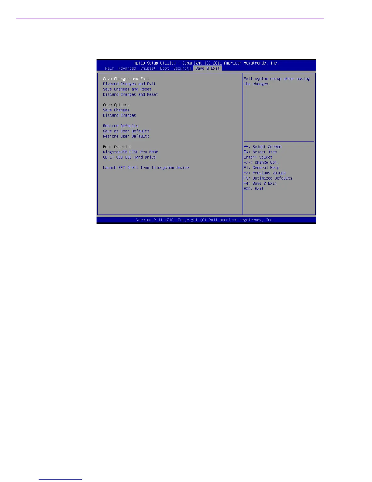 1. Select Exit Saving Changes from the Exit menu and press <Enter>. The follow-