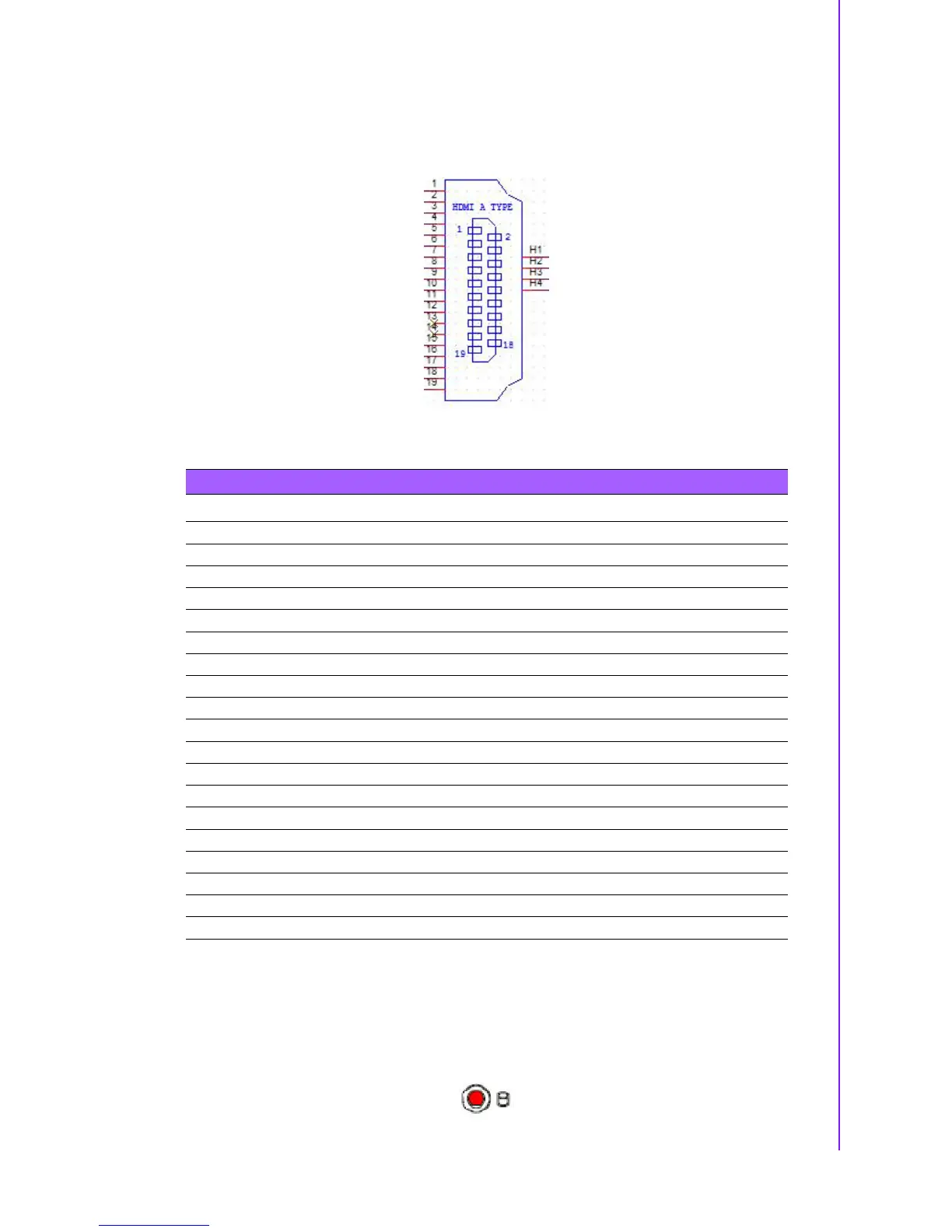Table 2.6: HDMI Connector Pin Definition