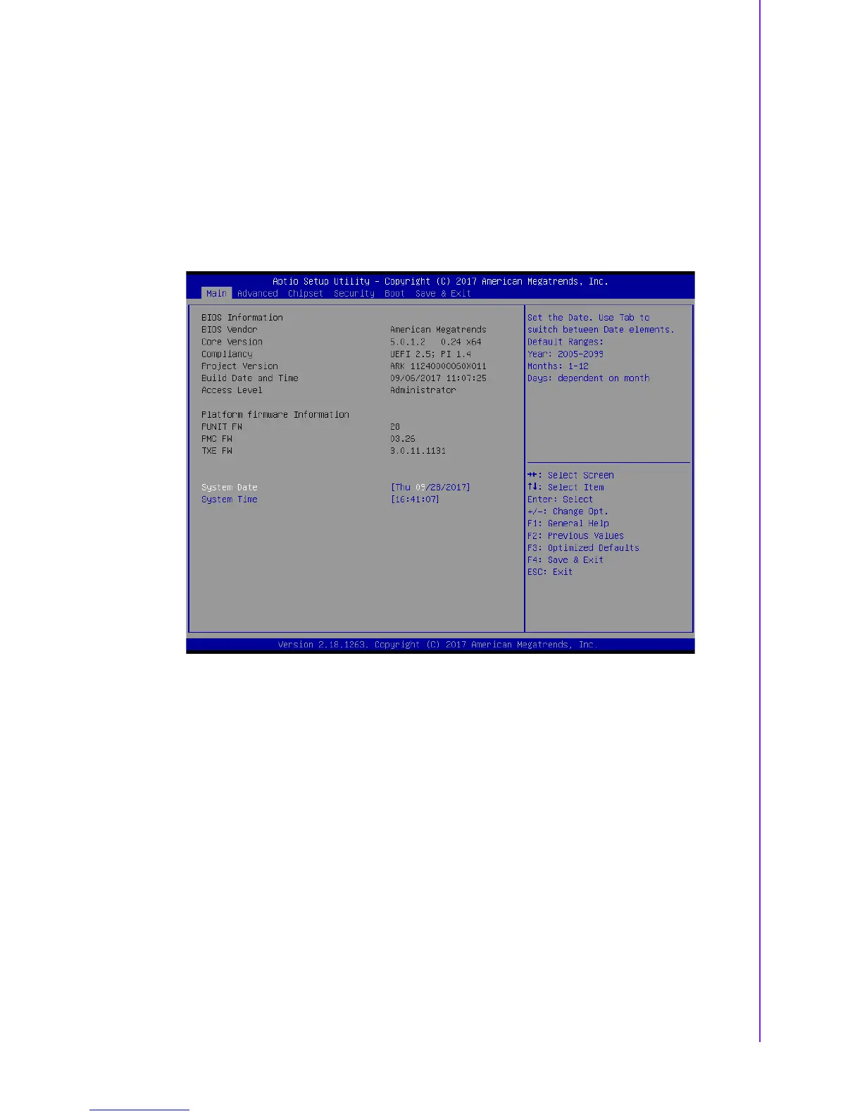 System Date using the <Arrow> keys. Enter new values through the keyboard.