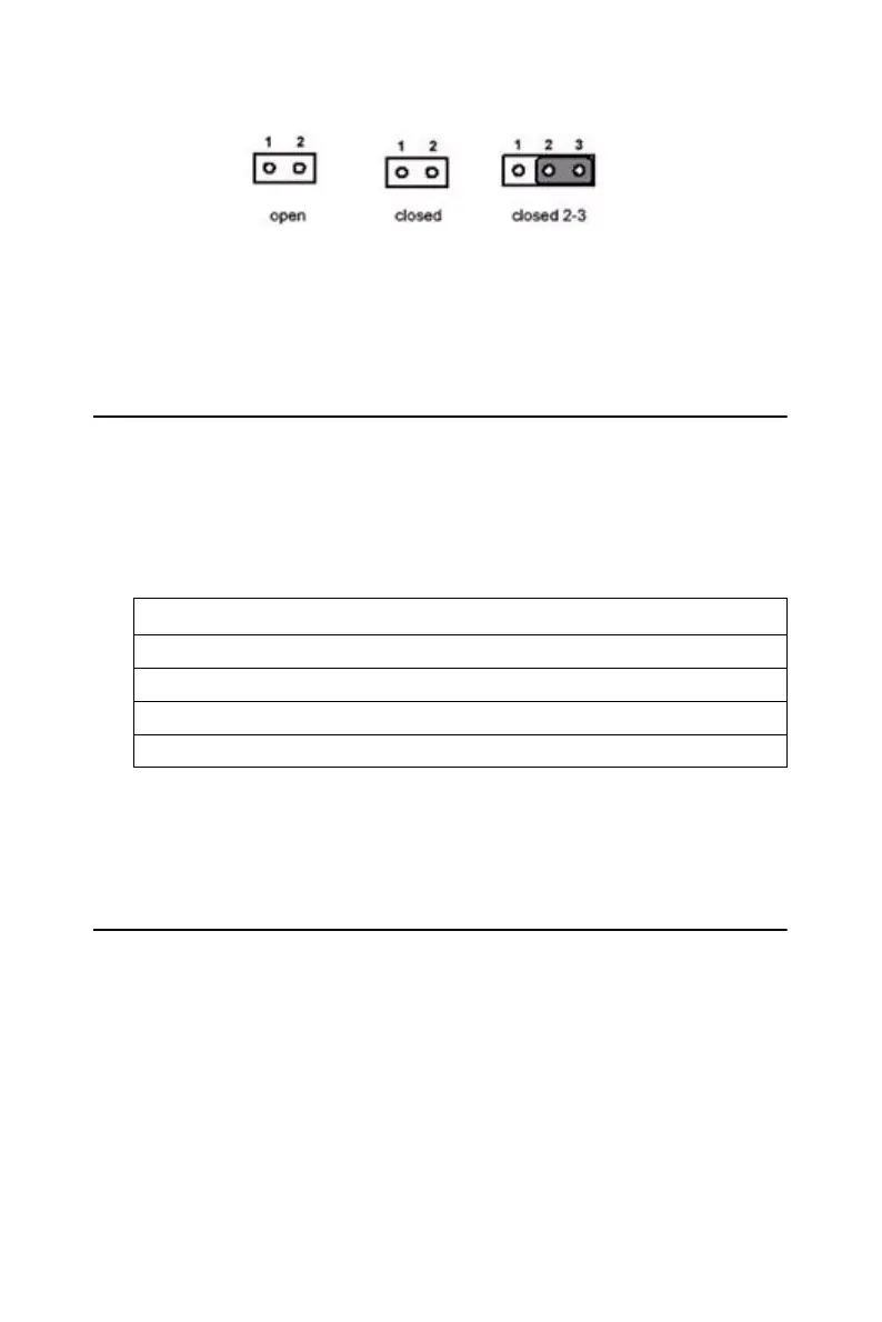 The jumper settings are schematically depicted in this manual as follows: