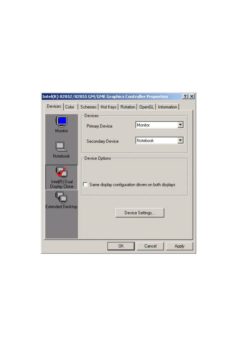 1. Select "Windows98", "Control panel", "Setting", "Advanced", "Graph-
