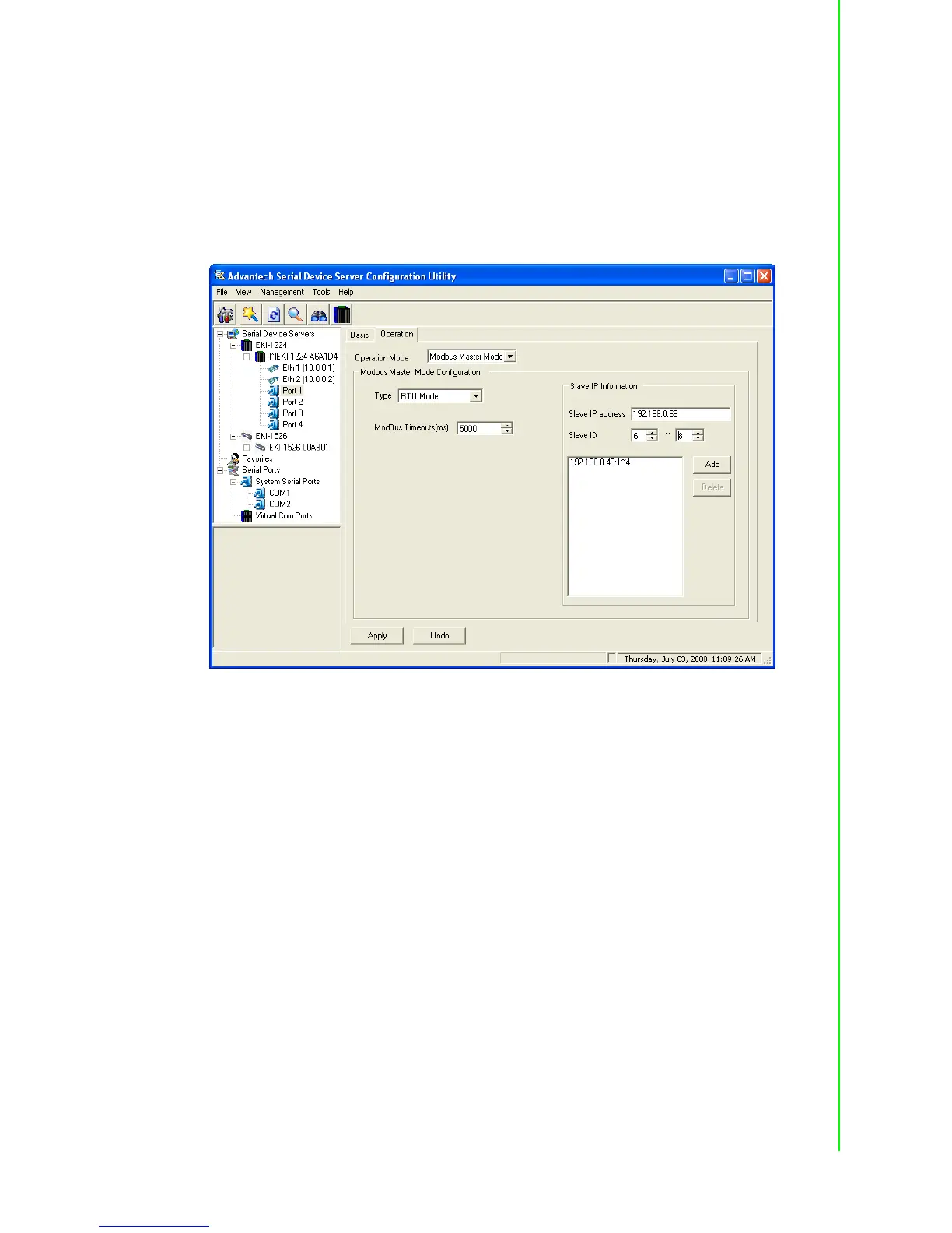 address in the column and its slave ID range, then click “Add” or “Delete” button to