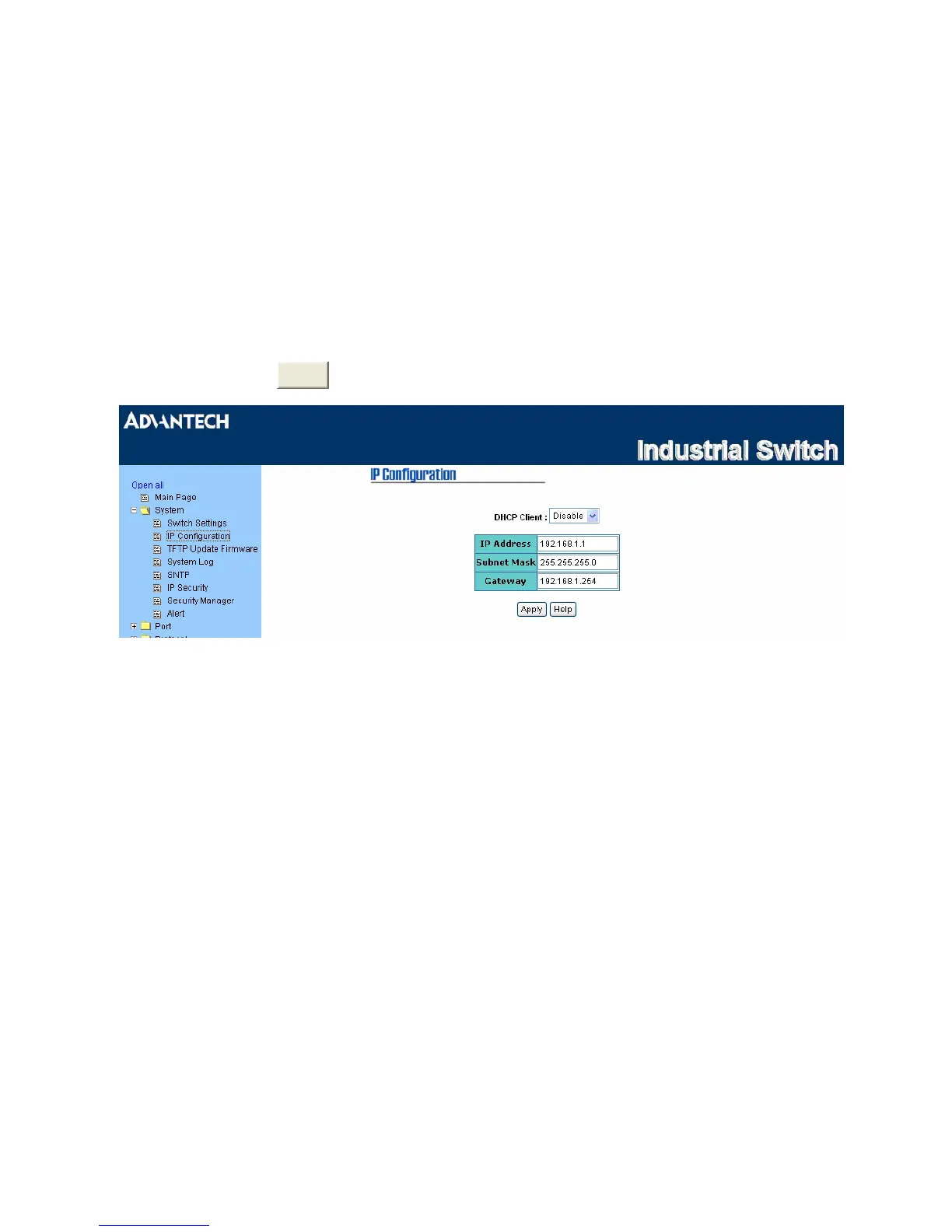 • DHCP Client: Enable or disable the DHCP client function. When DHCP client is enabled, the industrial