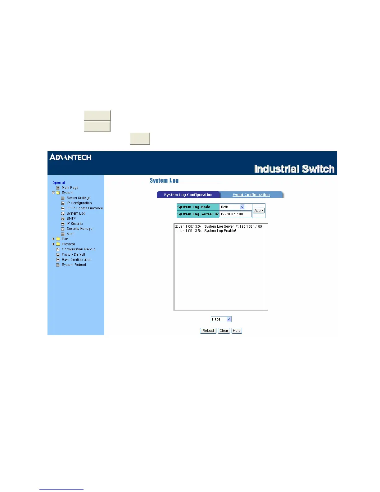 , the system log will be reserved in the switch’s RAM and sent to the