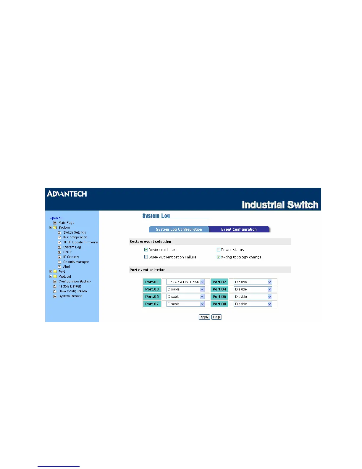 System Log – Event Configuration
