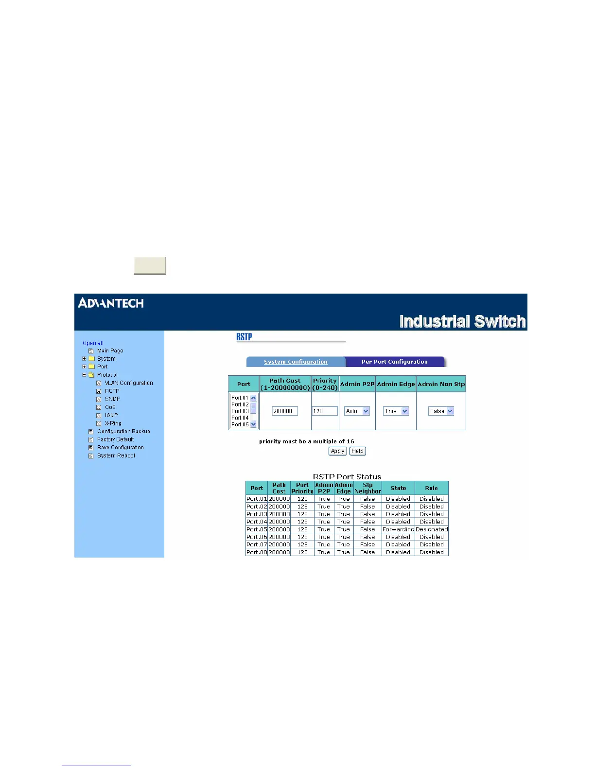 Figure 3.1-29 RSTP Port Configuration