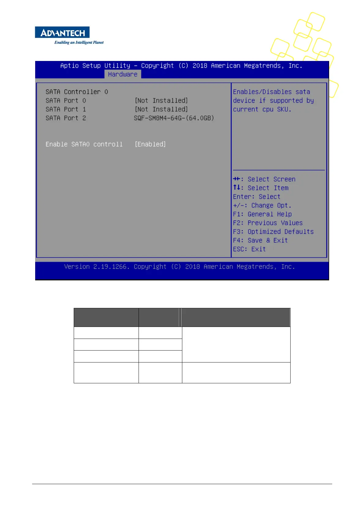 Table16:HardwareSetup:SATAconfigurationMenuItems