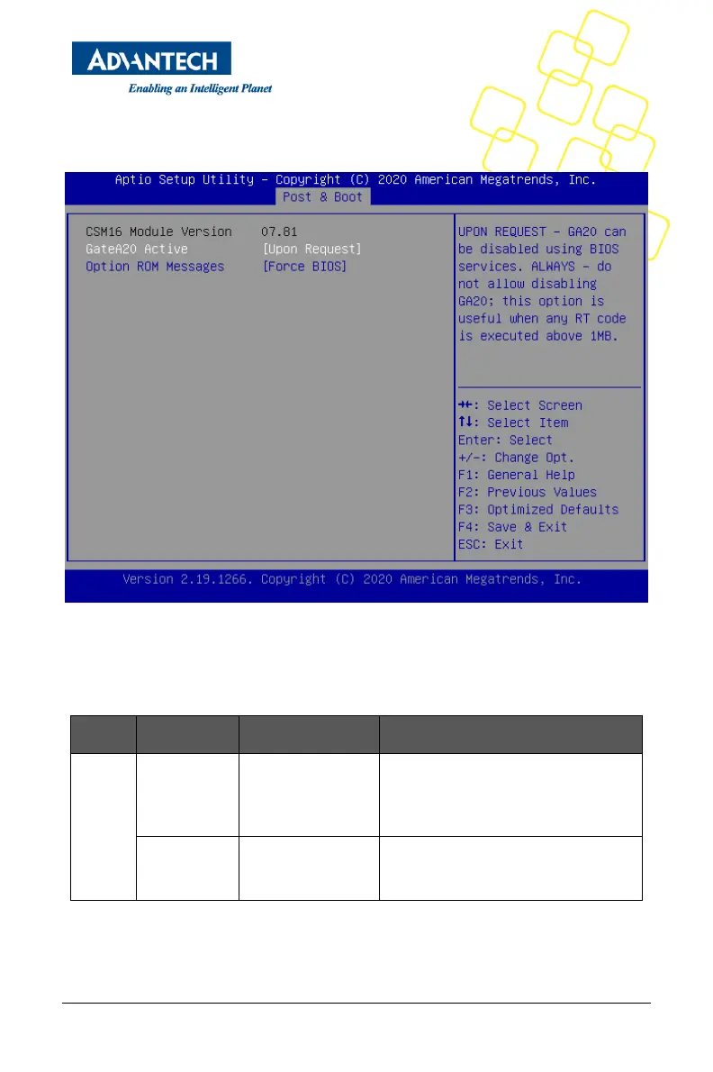 This submenu allows users to configure the support for legacy BIOS CSM16