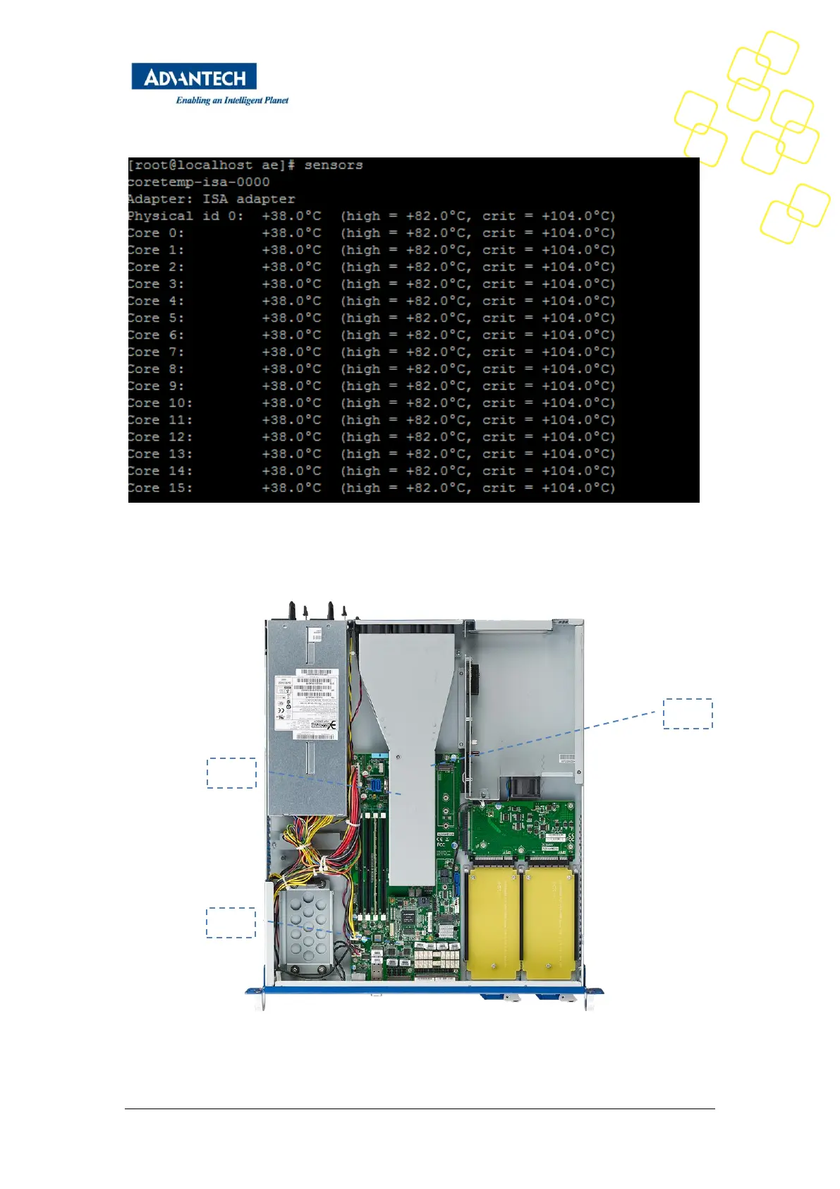 Advantech FWA-3260 - Figure 17: Thermal Sensor Locations; Figure 19: Display of CPU Temperature