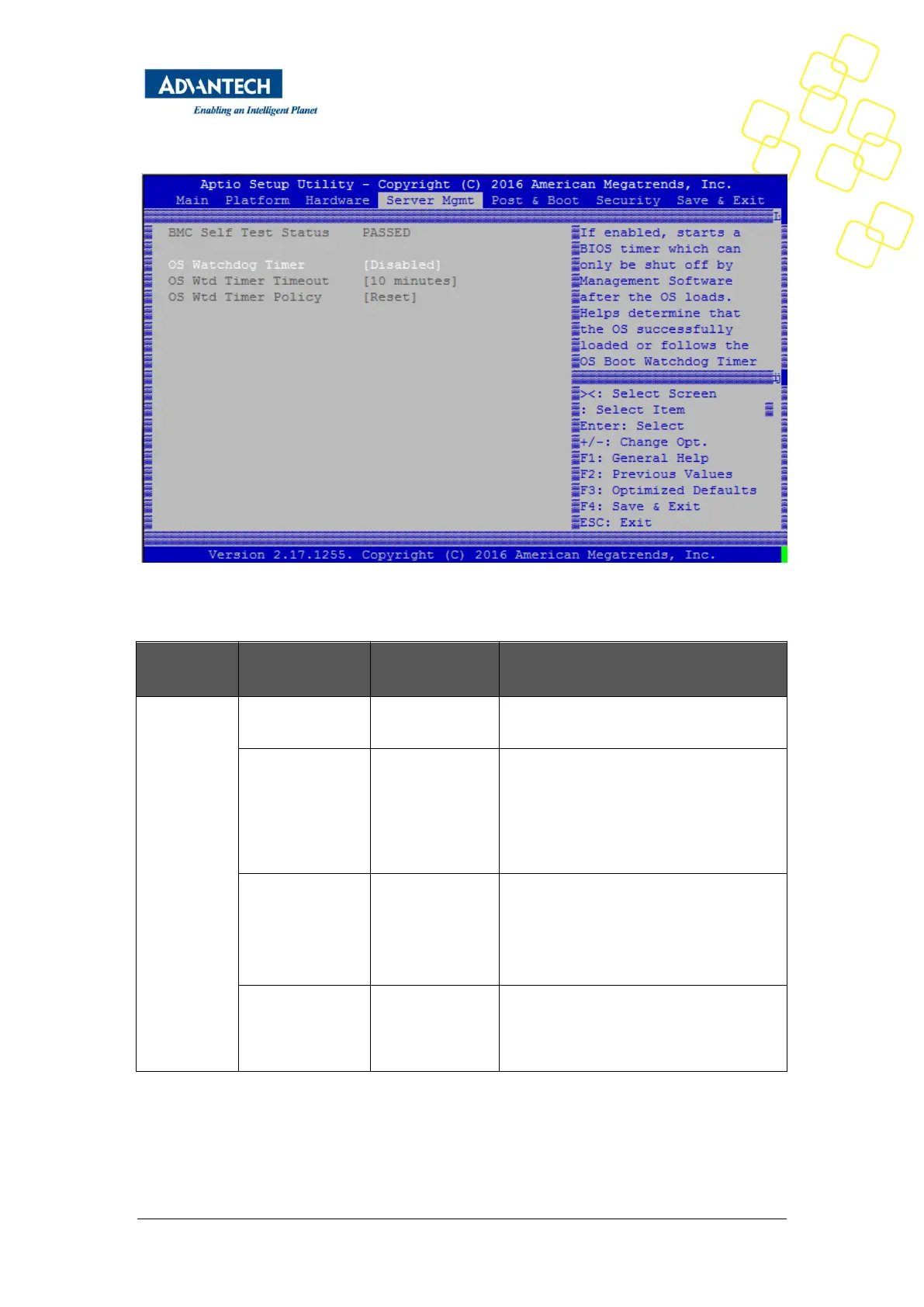 Not available if OS Boot Watchdog Timer is