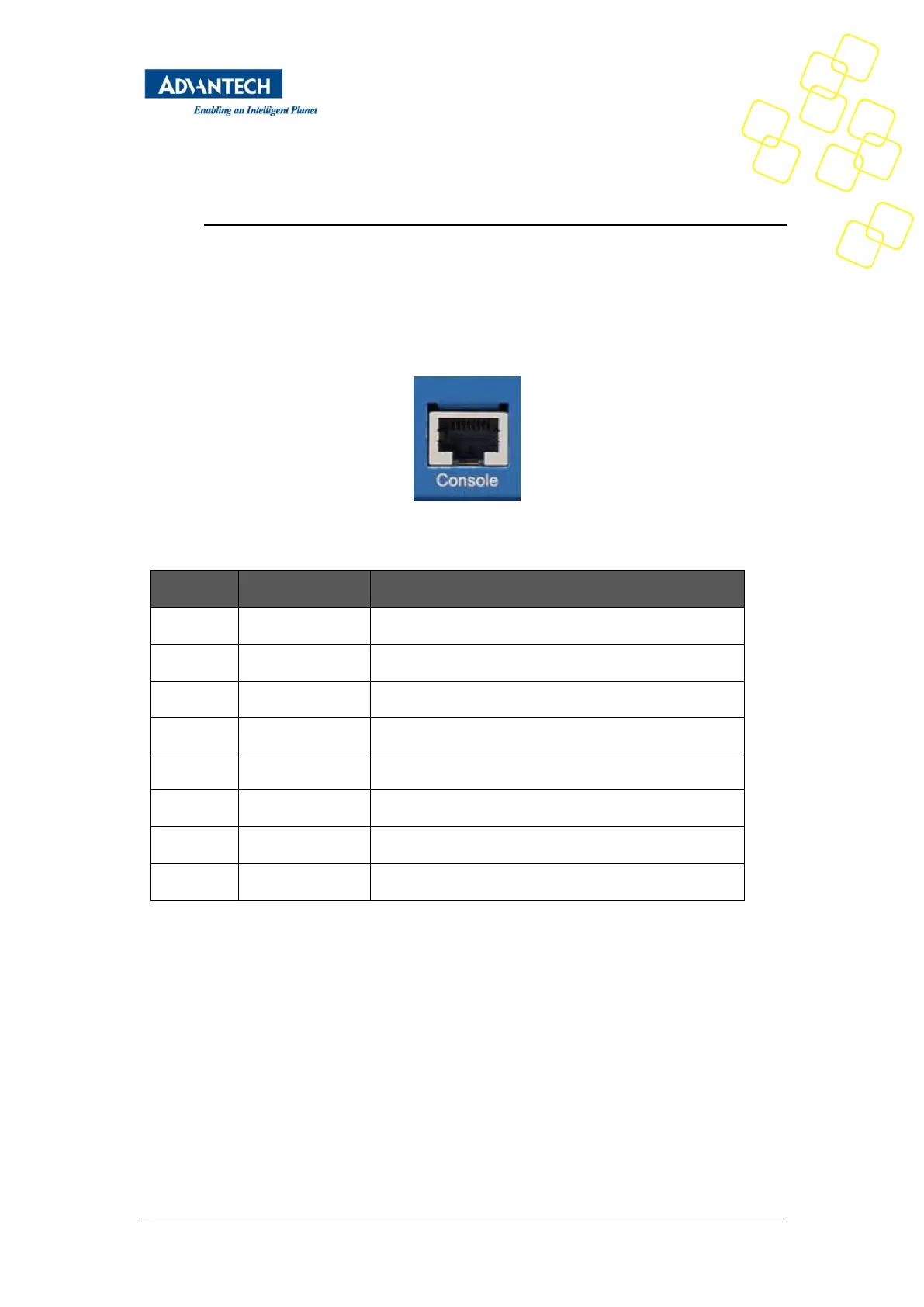 Table 45: Console connector pin assignment