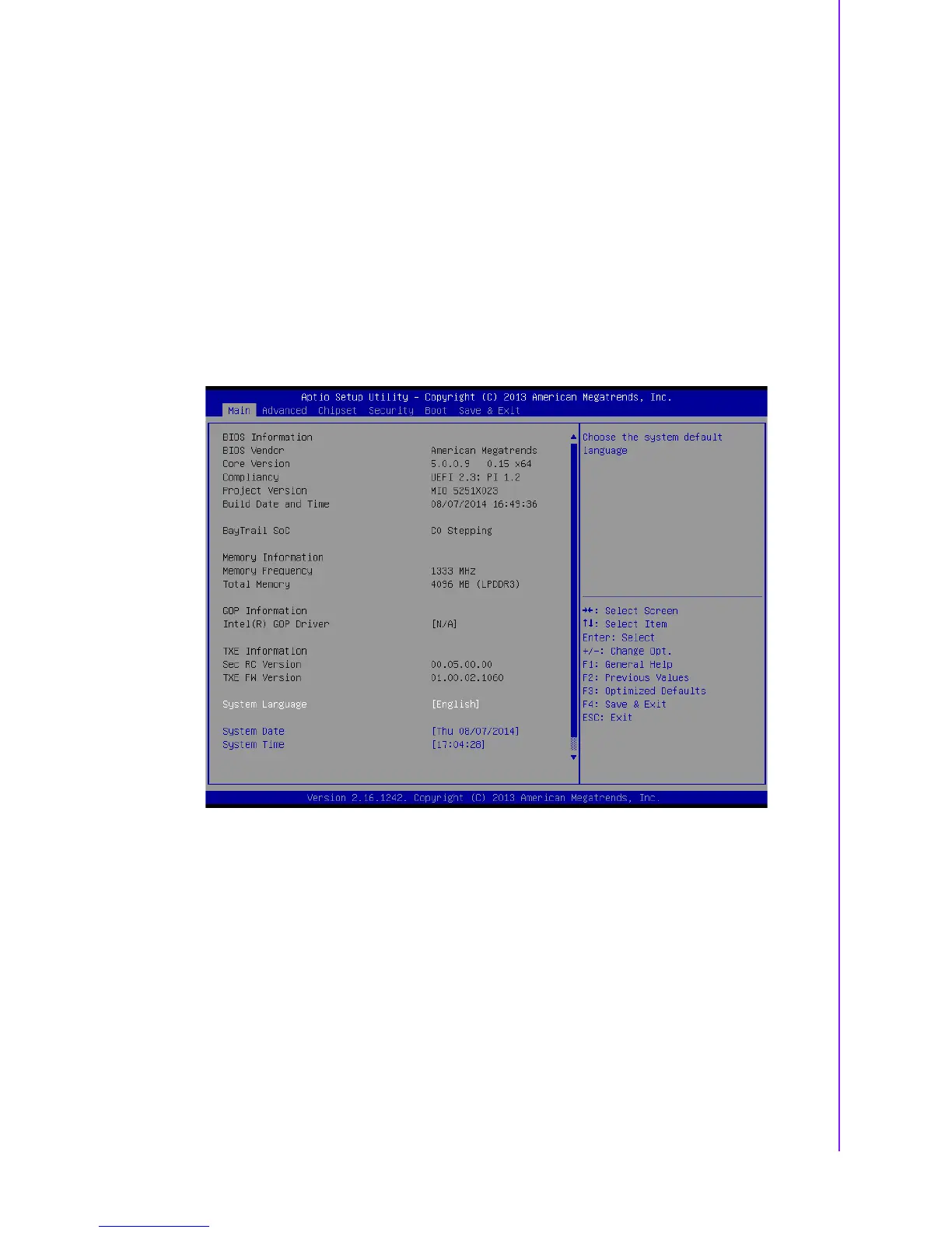 System Date using the <Arrow> keys. Enter new values through the keyboard.