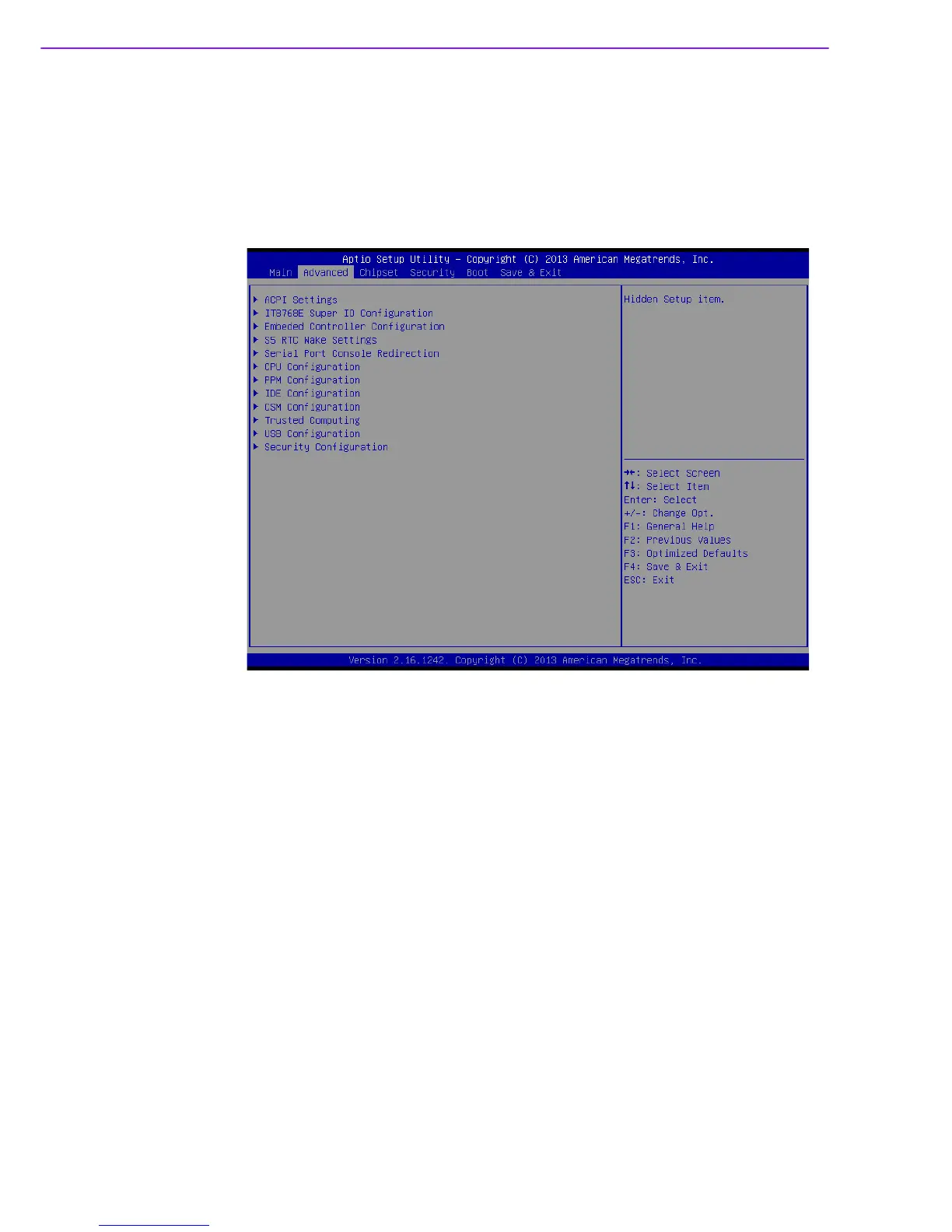 Select the Advanced tab from the MIO-5251 setup screen to enter the Advanced