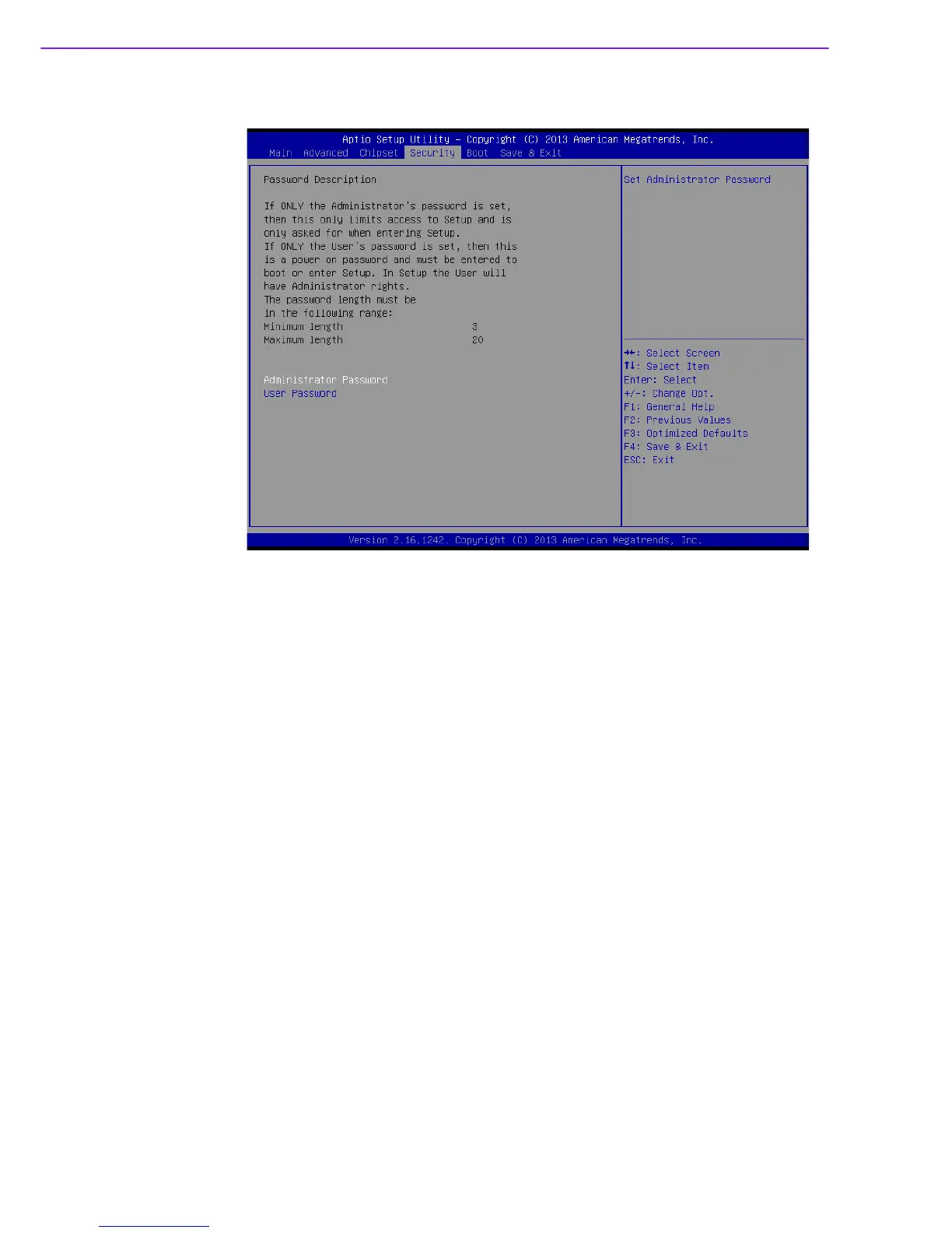 Select Security Setup from the MIO-5251 Setup main BIOS setup menu. All Security