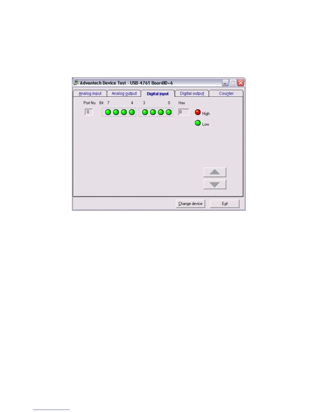 Figure 2.6: Digital Input Tab in Device Test Dialog