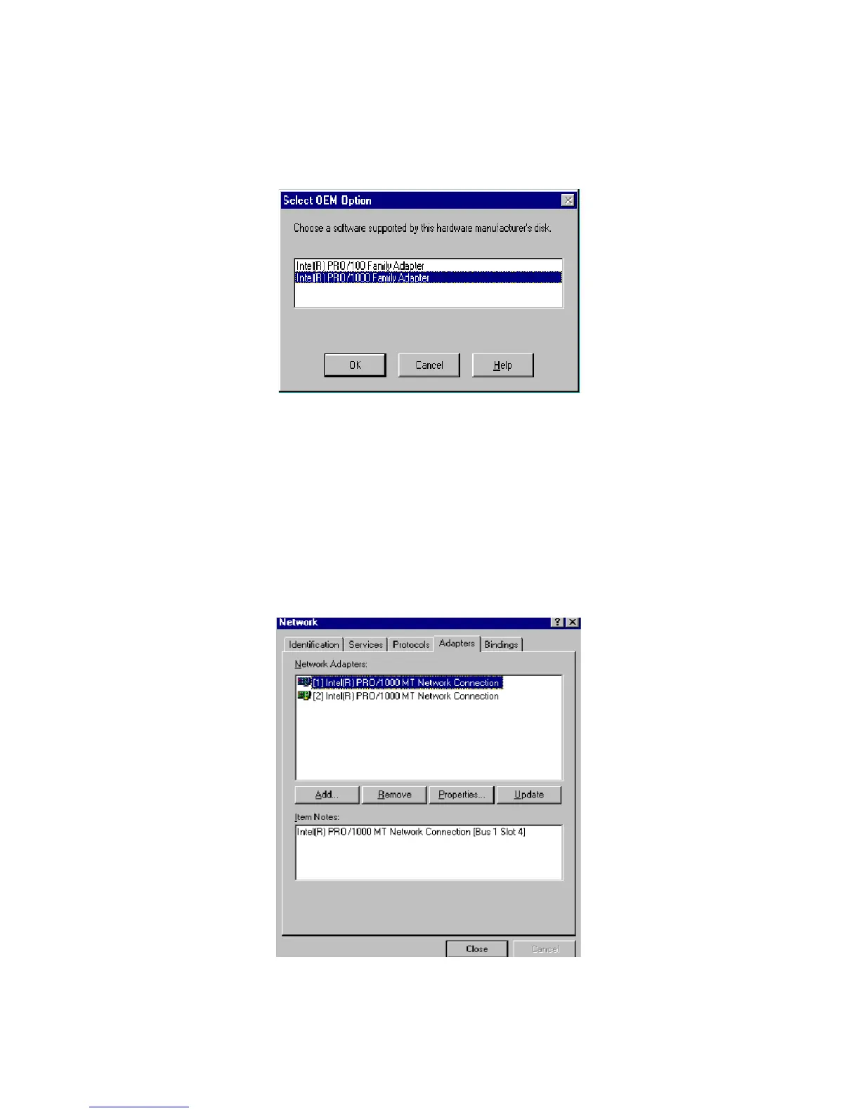 5. In the "Select OEM Option" window, select Intel Pro 1000 Family