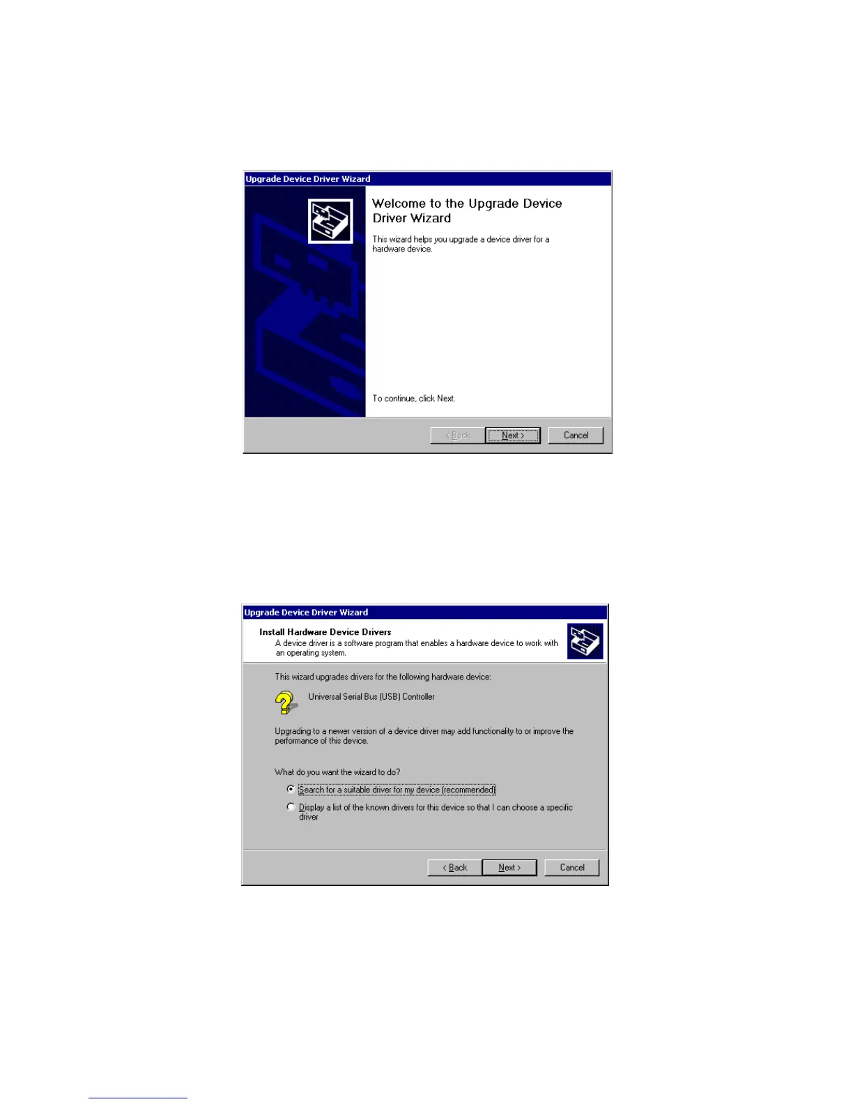 6. In Upgrade Device Wizard, choose "search for a suitable device