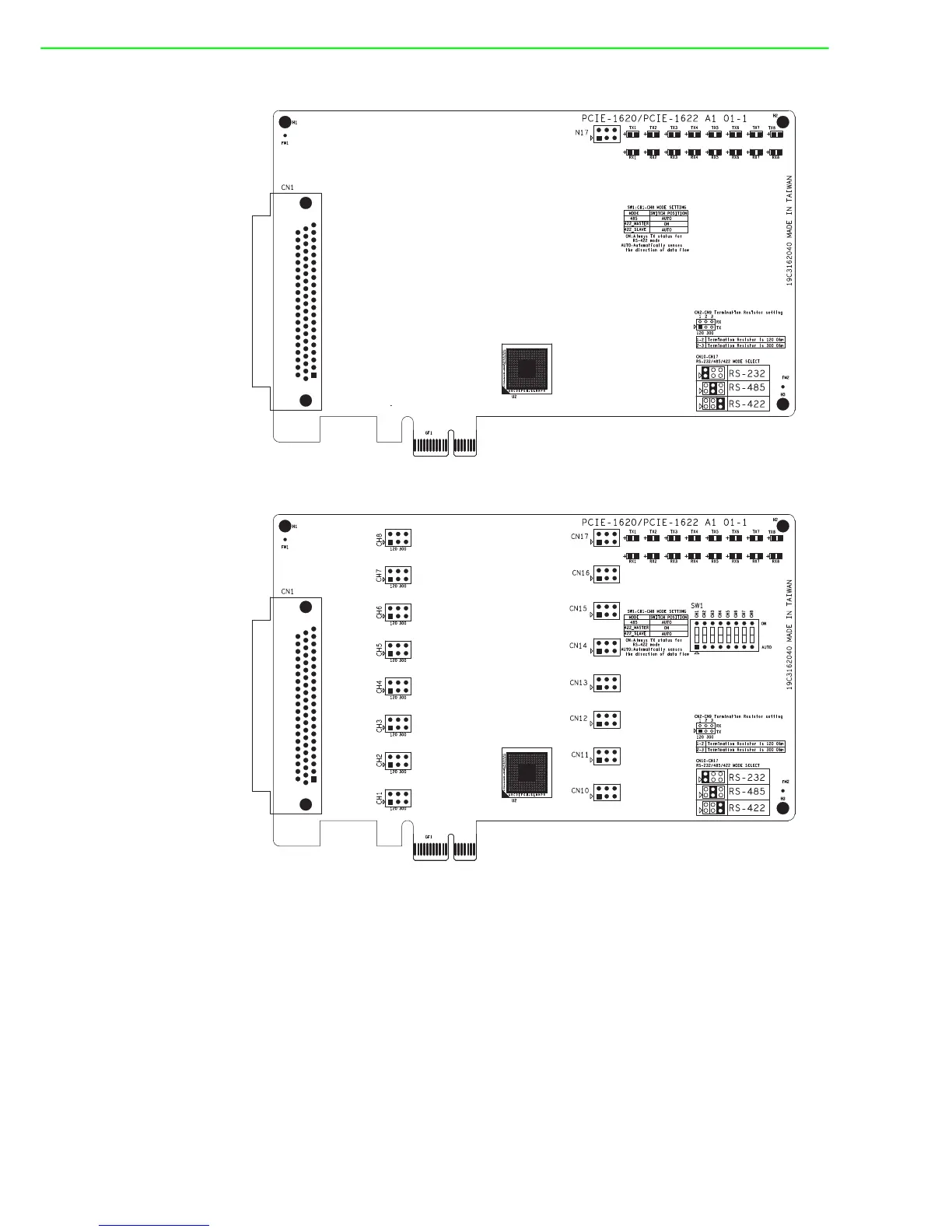 Figure 2.12 PCIe-1622A/B Silk Screen