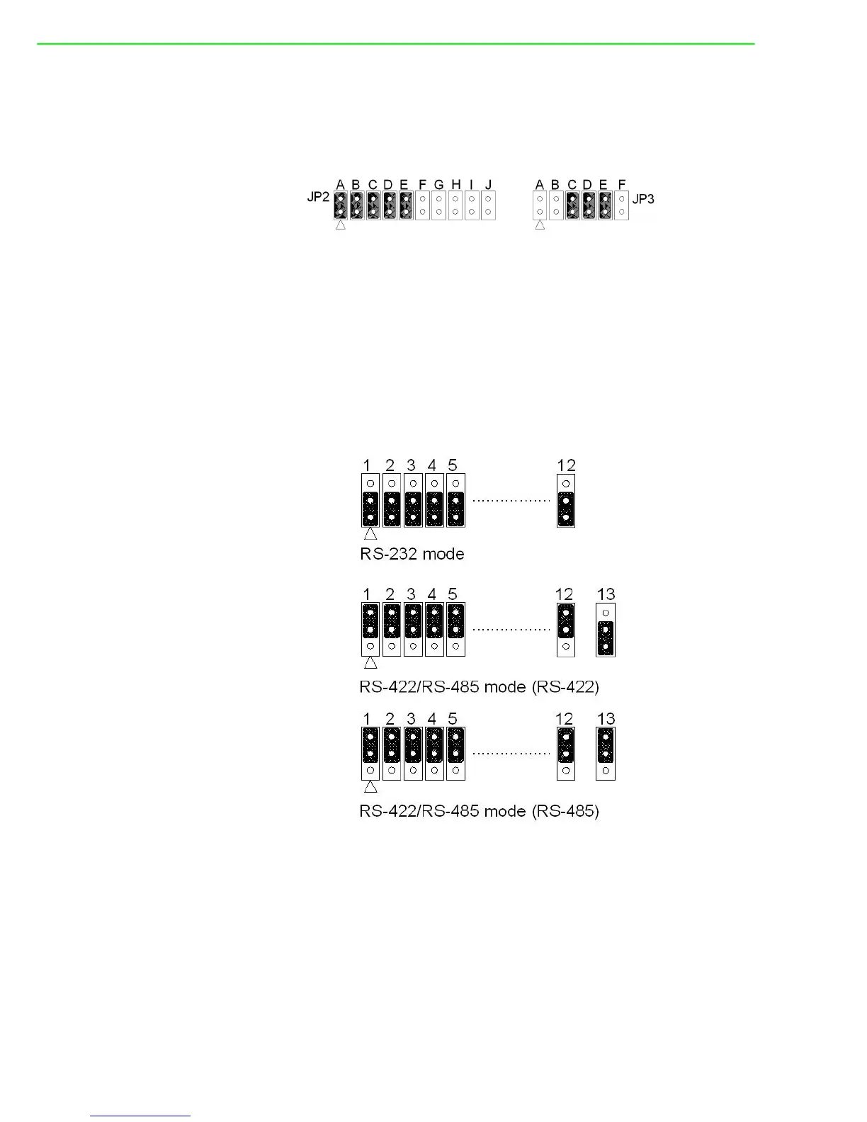 bottom two pins of the 12*3 pin jumper should be connected. For RS-422/ RS-485