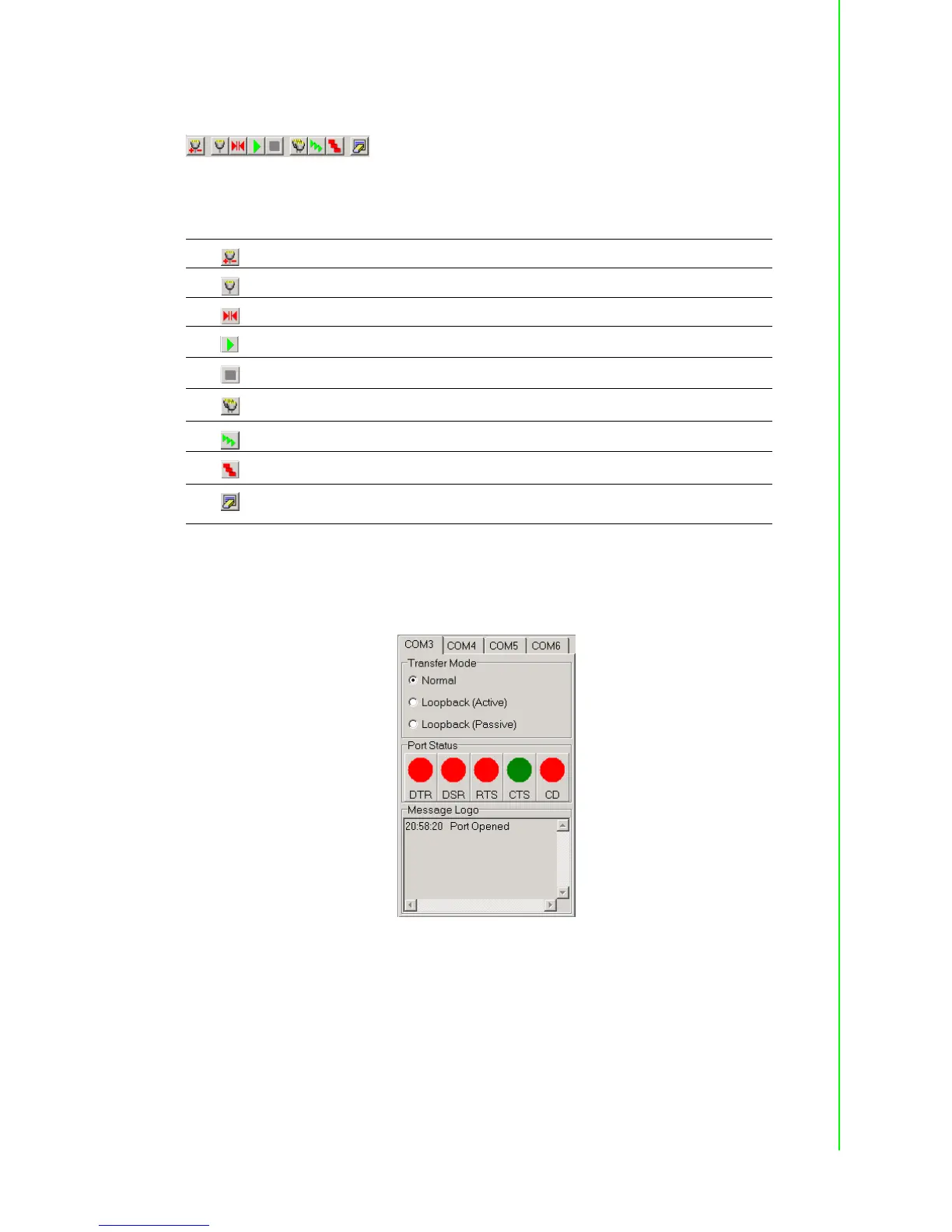 Each Com Port tab represents a specific port you have selected for test and configu-