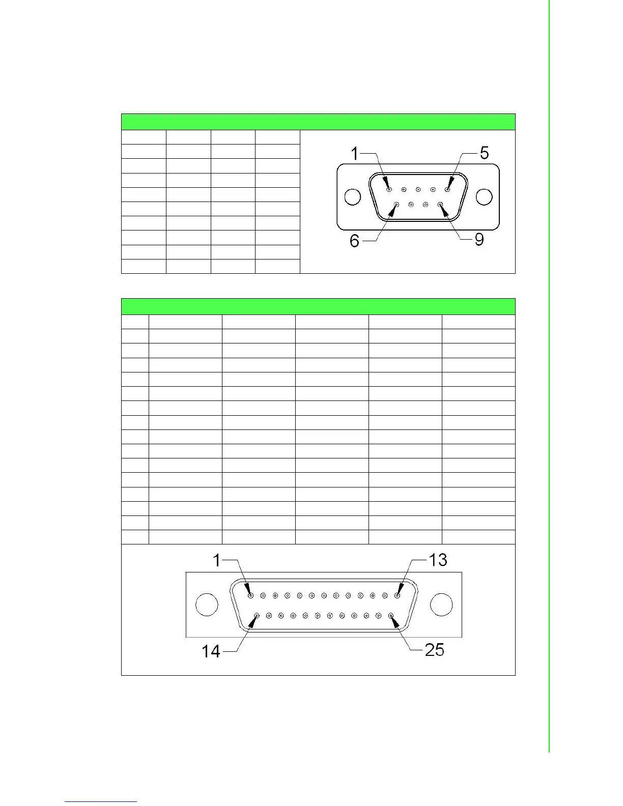 The following tables and figures show the pin assignments of 1 female DB37 connector on
