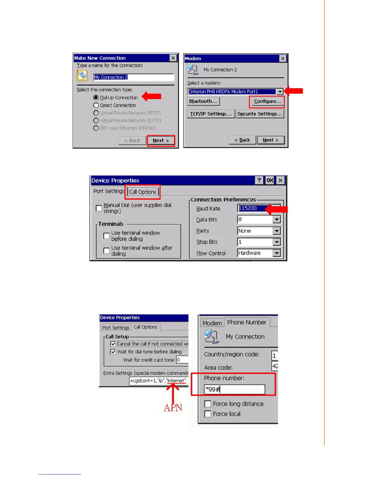 3. Tap Make New Connection -> Dial-Up Connection -> [Cinterion PH8 HSDPA