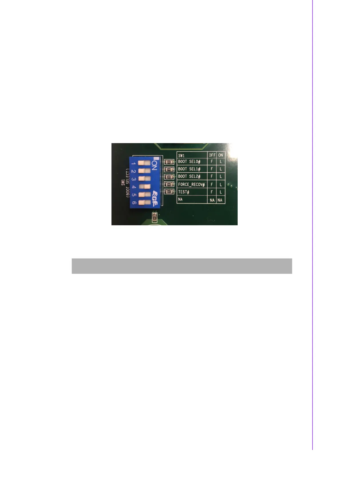 3. Set the correct boot mode on ROM-DB5901 SW1 with 4ON, turn every other pin