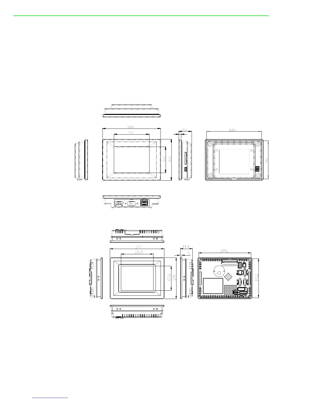 TPC-61T: 195 x 148 x 44.4 mm (7.68" x 5.83" x 1.75")