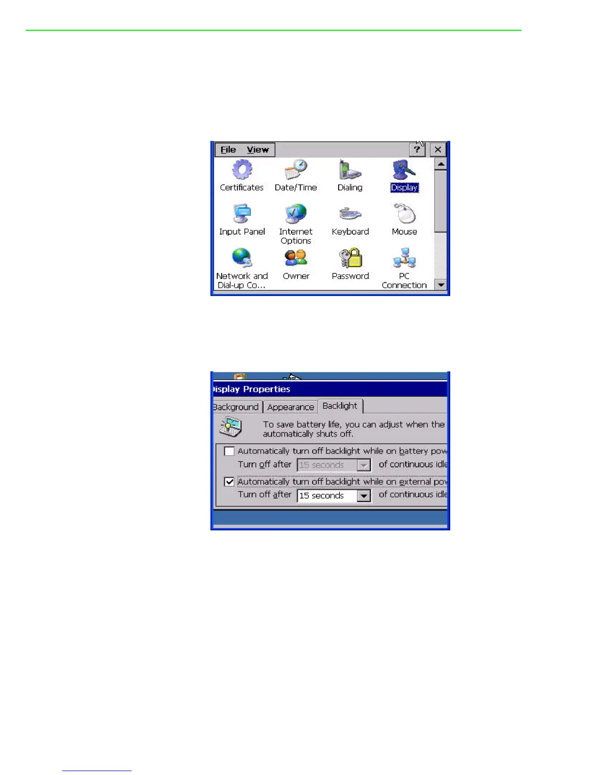 used to lengthen the device life. Go to “Start” -> “Setting” -> “Control Panel” -> “Dis-