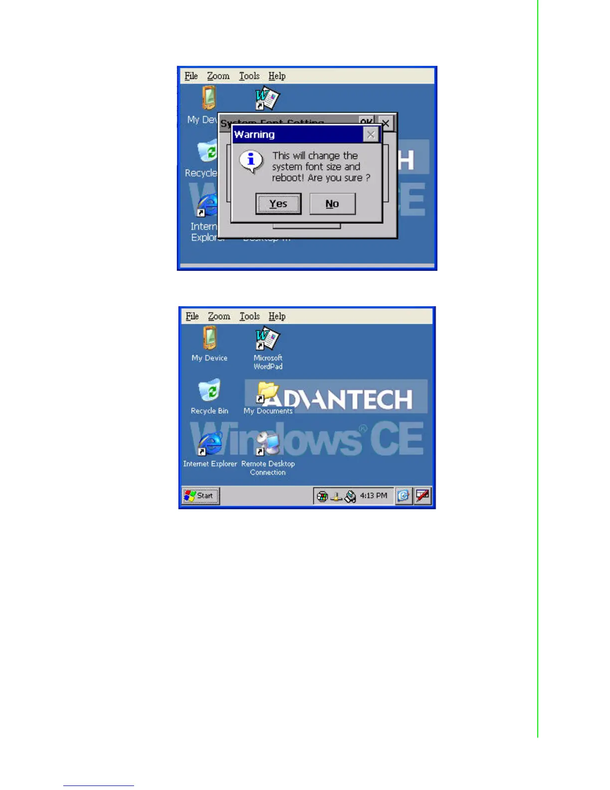 Advantech TPC-31 - Figure D.3 Change Font Setting; Figure D.4 Small Font Display