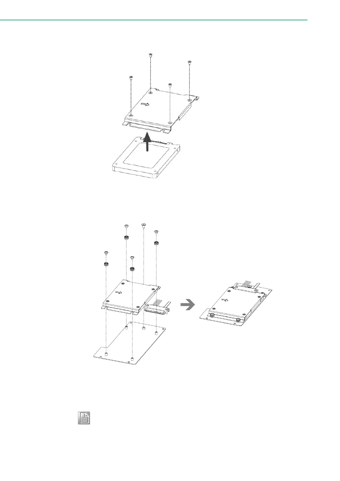 1. Secure the SSD onto the bracket using four M3x4L screws.