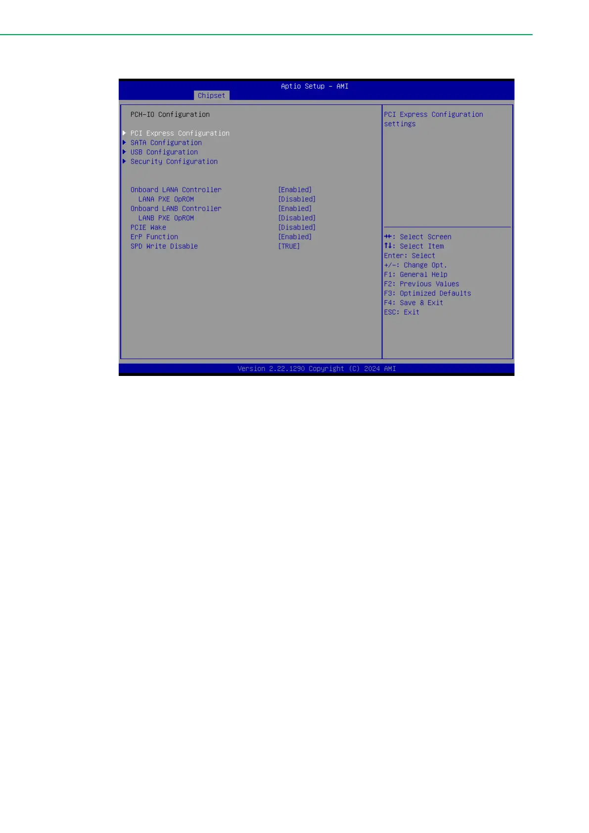 This submenu allows users to set the PCI Express settings.