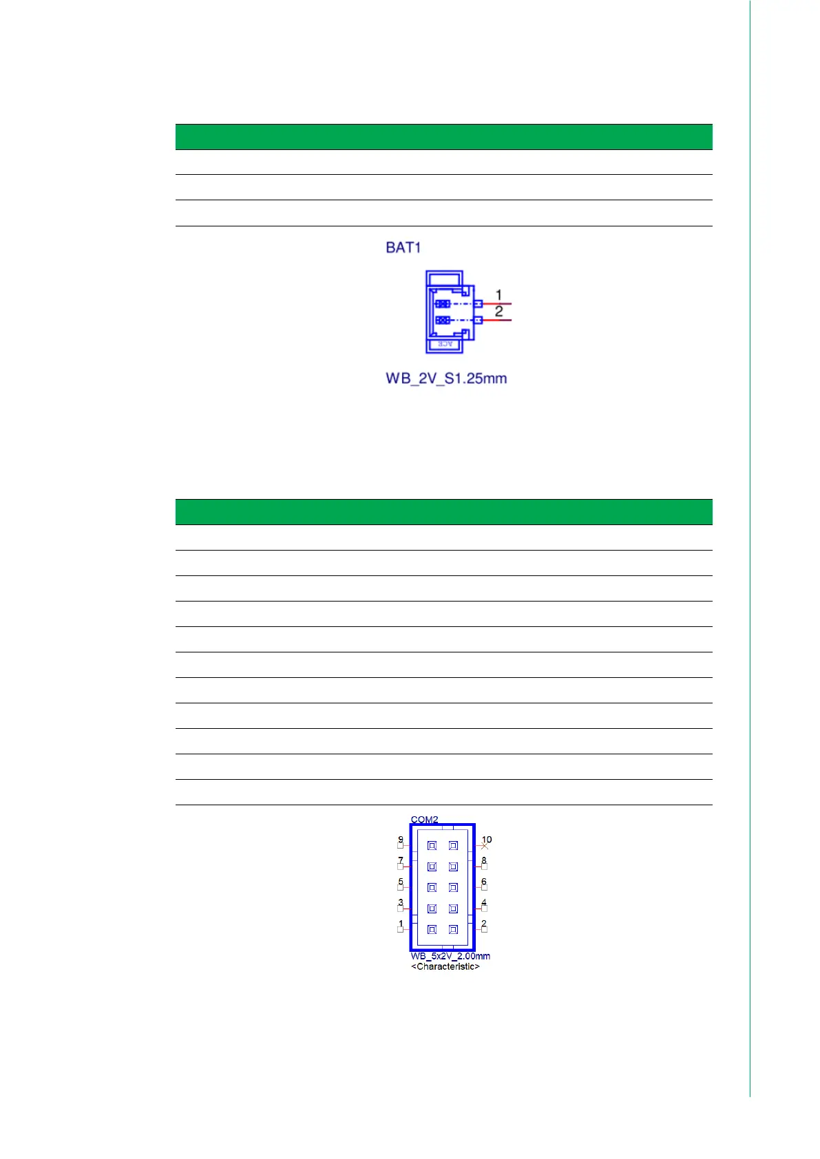 Advantech TPC-B520 Series - RTC Battery Connector (BAT1); Internal RS-232;422;485 Connector (COM2)